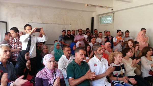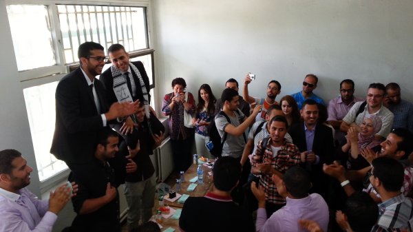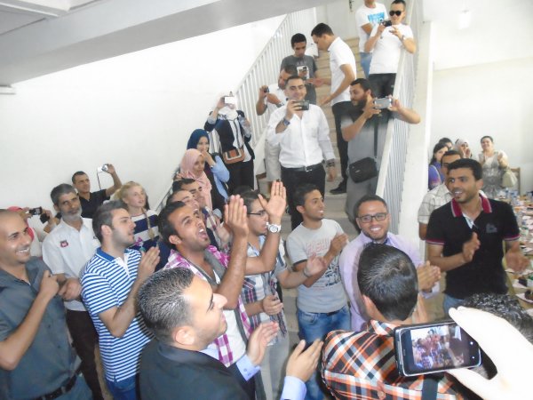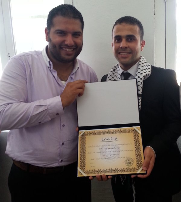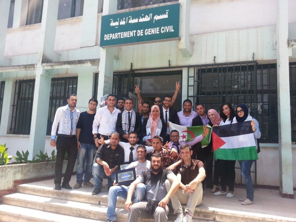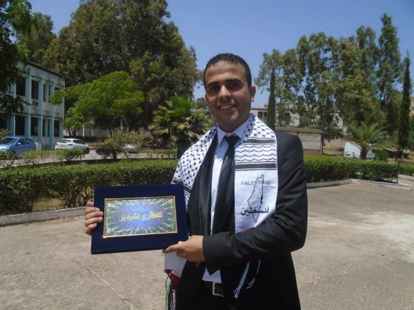 (اثناء تسلم شهادات التقدير من الاتحاد العام لطلبة فلسطين - وحده عنابة)