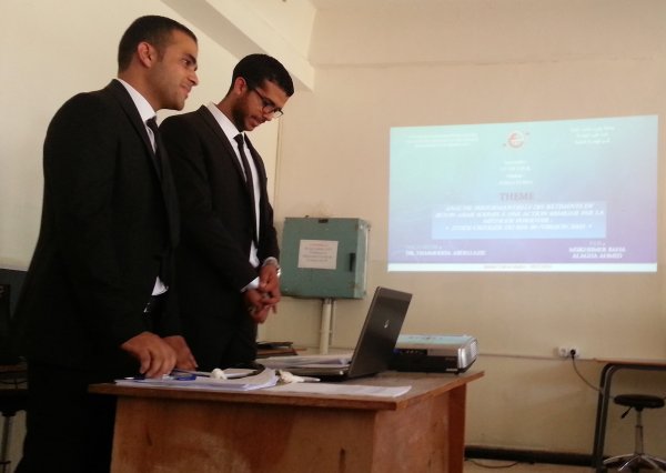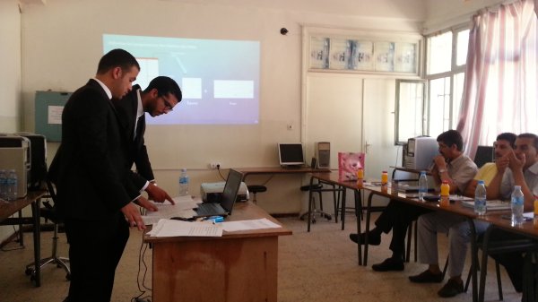 م. أحمد زهير يوسف الأغا، م. بهاء مخيمر (اثناء عرض بحث التخرج)