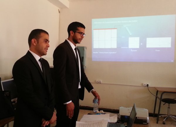 م. أحمد زهير يوسف الأغا وزميله م. بهاء مخيمر (اثناء عرض بحث التخرج)