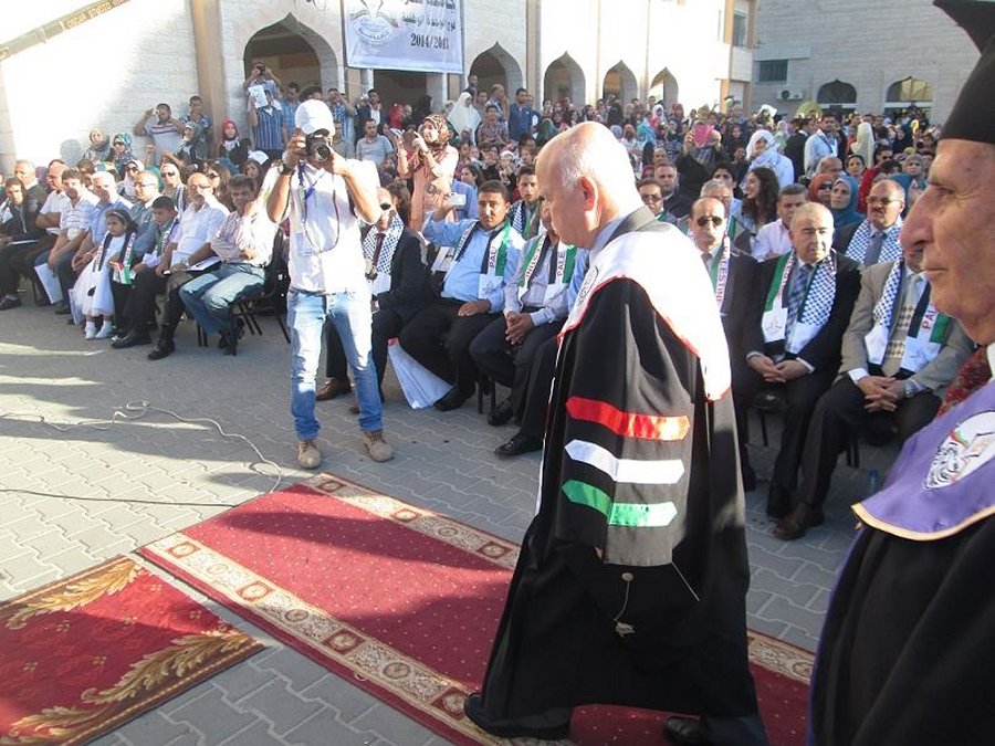 من جهته قال رئيس الجامعة الأستاذ الدكتور رياض الخضري، إن جامعة غزة هي صرح تعليمي شامخ بدأ حديثا لكنه وضع بصماته على قطاع التعليم في فلسطين.