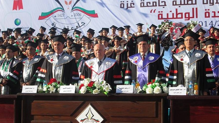 تحت رعاية الرئيس محمود عباس، احتفلت جامعة غزة، اليوم الجمعة، بتخريج الفوج الأول من طلبتها، فوج الوحدة الوطنية.