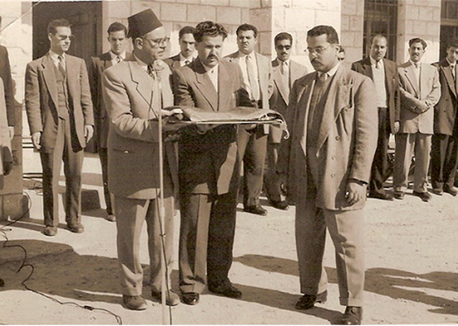 الشيخ محمد صوالي . شكري شاكر شبير , فائق العلمي ,منير النونو ,الشيخ محمد سردانة , الشيخ ناجي السعافين .حمدي البطة " ابو نزار "حسن البطة " ابو نبيل ",خيري حافظ الاغا ,كامل اللحام , عاشور مسعود الاغا .عبد الحميد طقش ,جاسر عبد الاغا ,طالب النونو ,الشيخ زكريا الاغا ,جرير القدوة ,الشيخ خالد الفرا ,الشيخ محمد الخطيب ,محفوط الخطيب ,وليد شبلاق ,ابراهيم الشاعر " ابو جارة :,احمد الفرا ,محمد زايد النجار ,توفيق الحوراني ,نيقولا مالينكوف " روسي الجنسية" معلم لغة فرنسية ,قسطندي سابا ,حمدي العبادلة ,رمضان الخطيب , محمد نشبت , محمد دياب , حسن صرصور , مضيوف الفرا ,هارون هاشم رشيد ,فتحي قاسم البلعاوي ,يسري القصاص , محمد الشامي ,عادل شراب ,محمد علي الفرا ,قاسم سليمان الاغا ,عوض حجازي ,عصام سعيد الاغا ,عبد العزيز الصوري ,احمد الغمري ,احمد زايد المصري ,احمد فرح عقيلان.