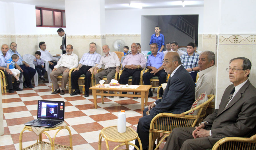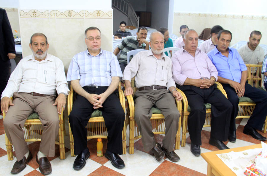 أ. عمر عودة الأغا، والد العروس، الحاج فتحي قاسم الأغا، ا. خالد أحمد الأغأ، د. وجيه صقر الأغا، أ. غسان عبدالله الأغا