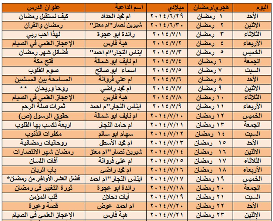 برنامج أنشطة دار الكامل خلال شهر رمضان المبارك للعام 1435ـ هــ