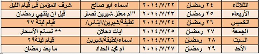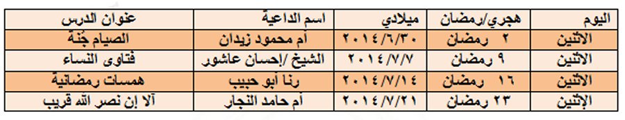 1) مقرأة يوميا الساعة العاشرة صباحا، ما عدا يوم الجمعة.
