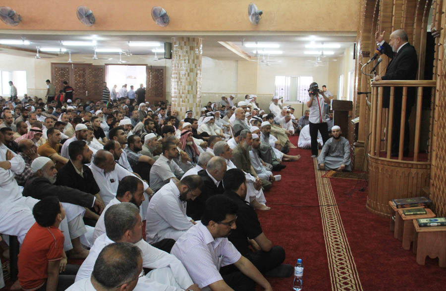 وبارك بحر خلال إلقاء خطبة الجمعة بالمسجد، افتتاح المسجد والإصرار على إنشاء وتعمير مساجد جديدة في الوقت الذى يقصف فيه الإحتلال المساجد بمنطقة خزاعة شرق خان يونس، مؤكداً أن الشعب الفلسطيني سيواصل مسيرة الإعمار والتطوير في شتى النواحي رغم اعتداءات وعراقيل وممارسات الإحتلال الإسرائيلي.