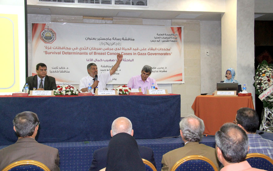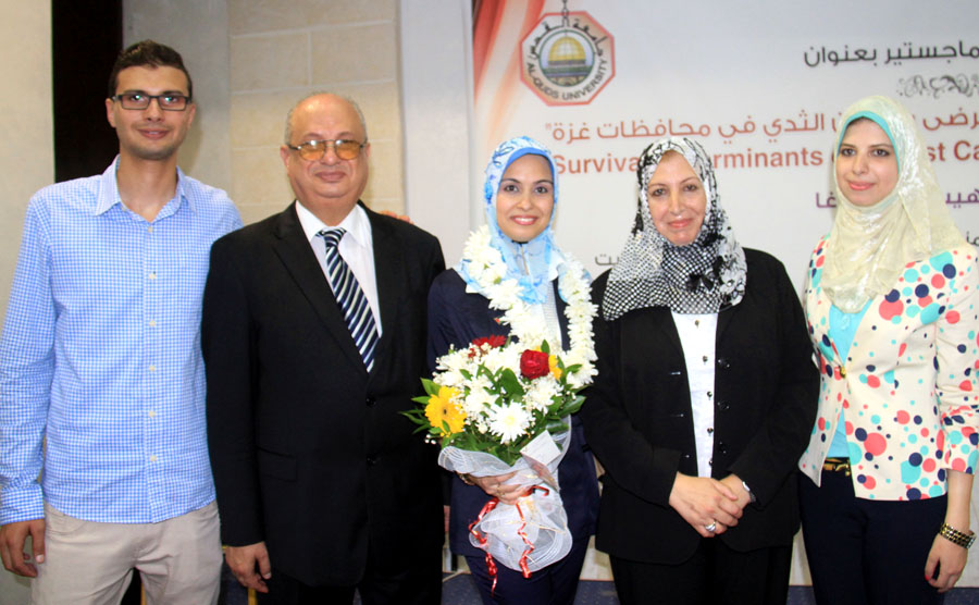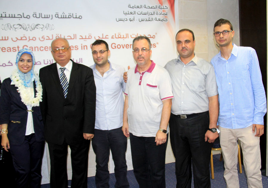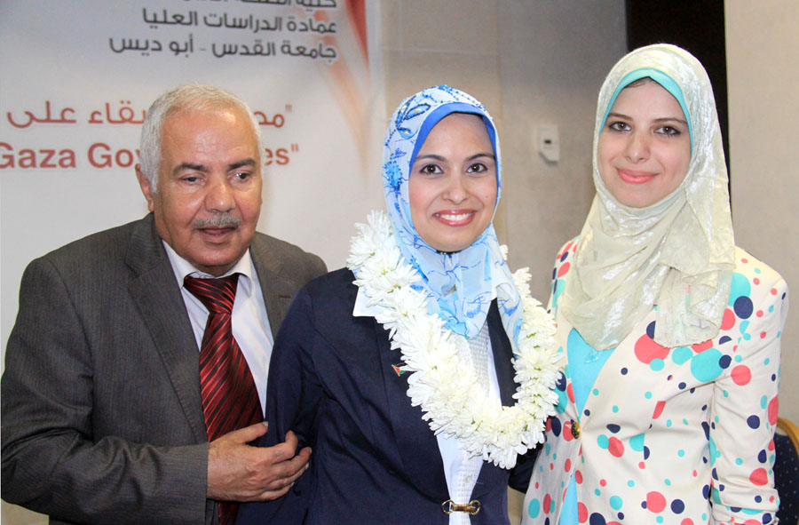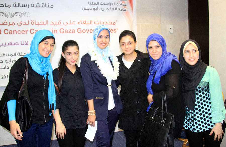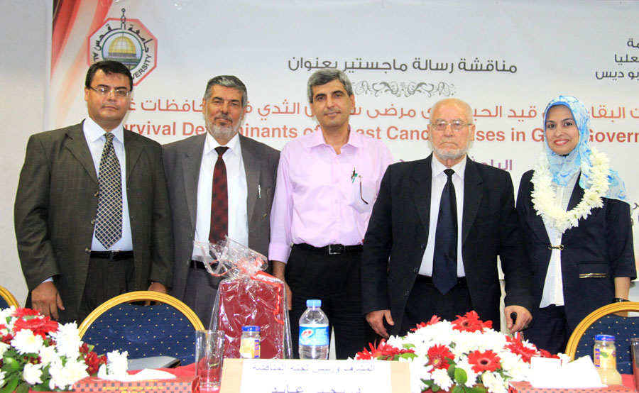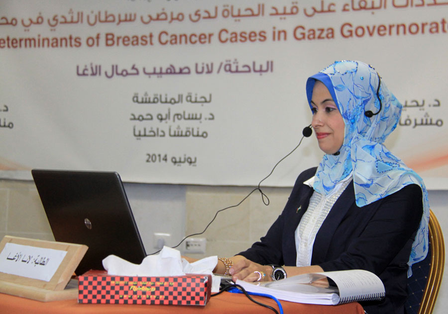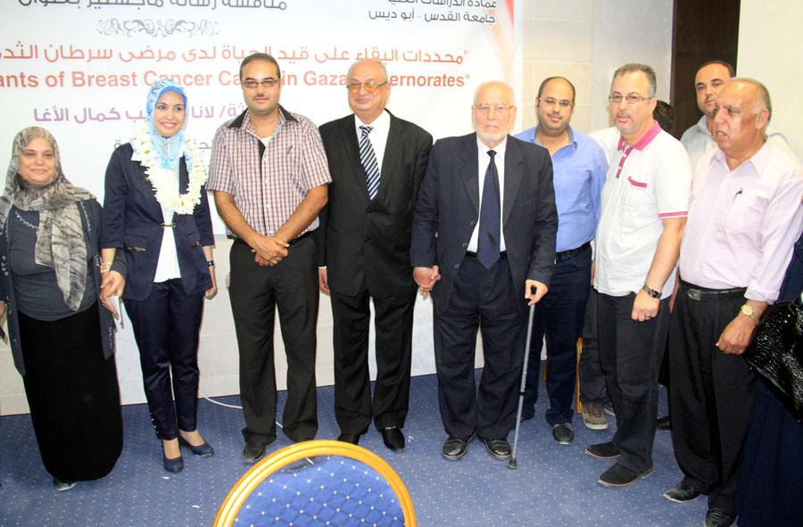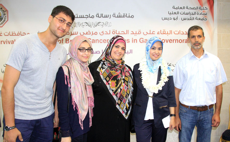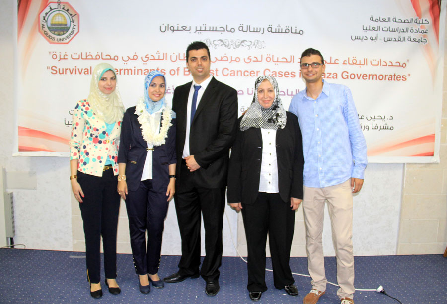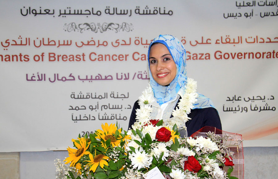 وأجرت الدراسة الباحثة لانا صهيب كمال الأغا للحصول على درجة الماجستير من كلية الصحة العامة – جامعة القدس- أبو ديس وتمت المناقشة بحضور لجنة الحكم والمناقشة د.يحيى عابد مشرفا ورئيسا، د.بسام أبو حمد الممتحن الداخلي، د.خالد ثابت الممتحن الخارجي ووزيرة شؤون المرأة د.هيفاء الأغا ووالد الباحثة د.صهيب الأغا ووالدتها د.ردينة الشوا والعشرات من الأساتذة والمعنيين وأقارب وأصدقاء الباحثة.
