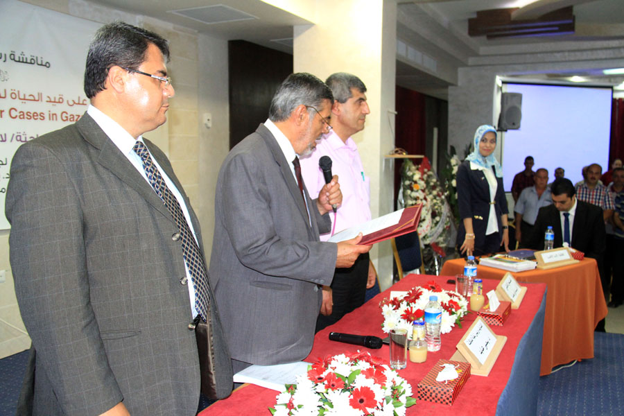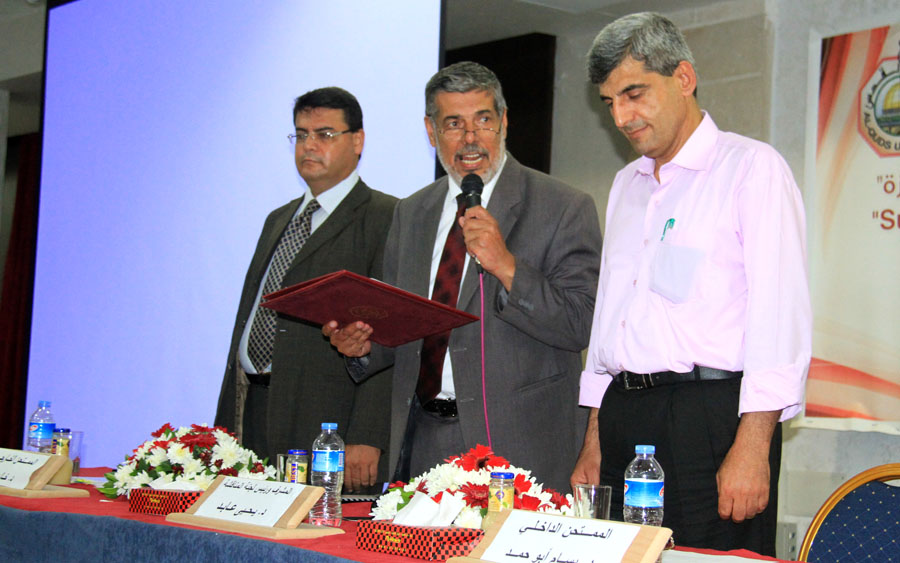 خلال الإستماع لتلاوة الحكم على رسالة الماجستير د. وليد القدوة، أبو أحمد الهندي، د. أحمد شملخ، أ. وليد هاشم الأغا