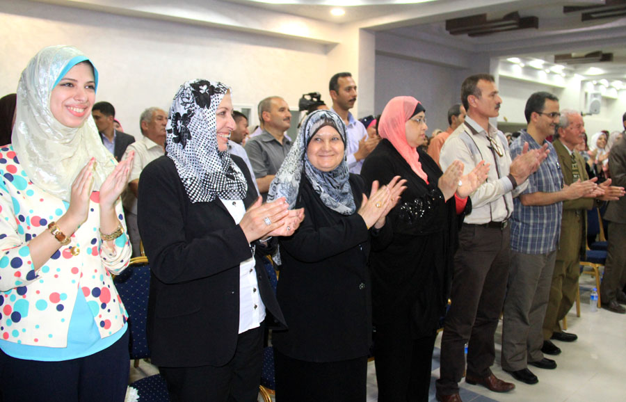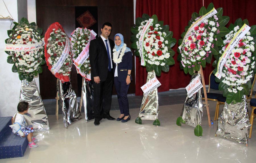 أ. عمر عودة الأغا، مستشار رضوان محمد الأغا، د. إيهاب قاسم الأغا، أ. سعدي القدوة وحرمه، وزيرة المرأة د. هيفاء الأغا،