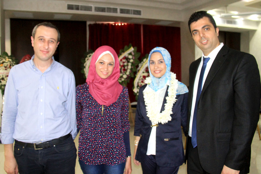 محمد فتحي القدوة، أ. هاني عاشور، والد الباحثة، أ. فتحي القدوة، الباحثة، أ. أم أحمد القدوة، إيناس القدوة،