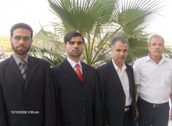1- السيد عاطف الأغا(والد العريس)، العريس، السيد عبد الستار العبادلة(والد العروس)