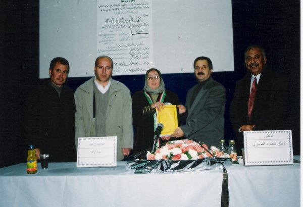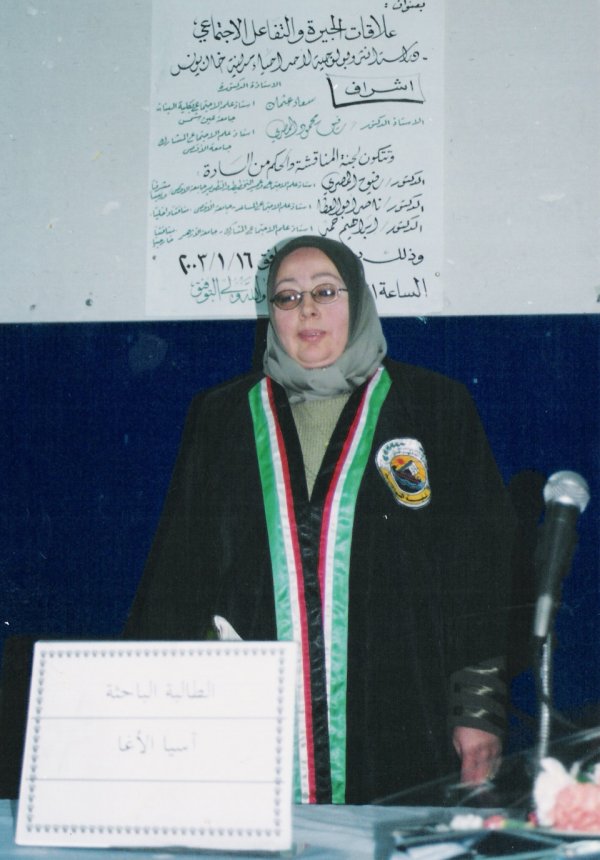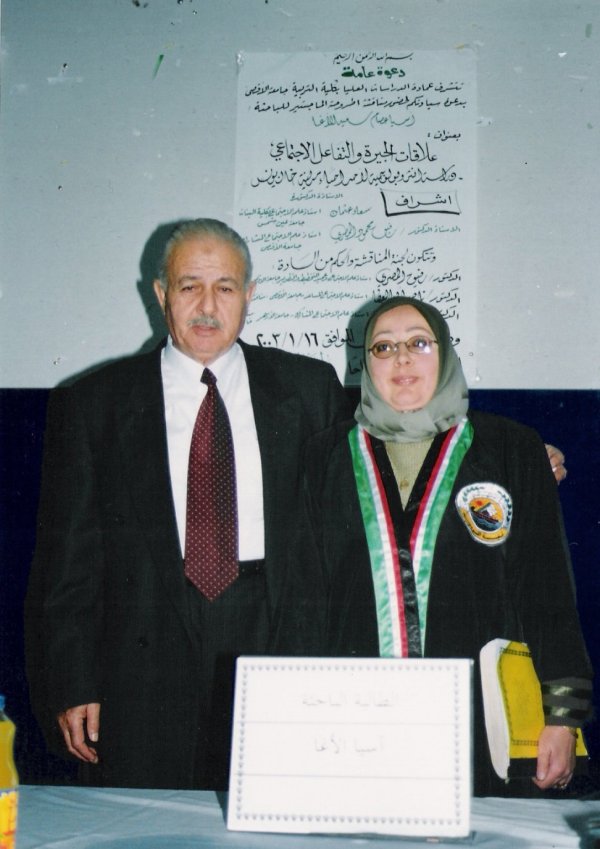 16-01-2003: غزة، جامعة الأقصى، كلية التربية، ناقشت الأستاذة أسيا عصام سعيد الأغا رسالة ماجستير تحت عنوان علاقات الجيرة والتفاعل الاجتماعي- دراسة انتروبولوجية لاحد احياء مدينة خان يونس، وألف مبارك