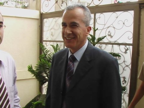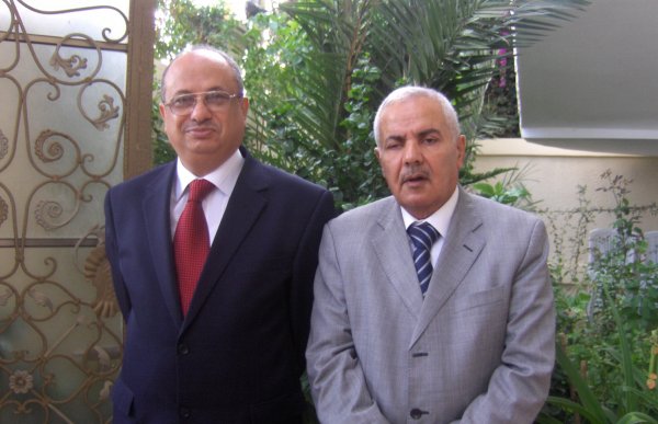 على اليمين: السيد ابورامي أبوحصيرة صاحب فندق الخليج، د. جواد وادي- رئيس جامعة الازهر