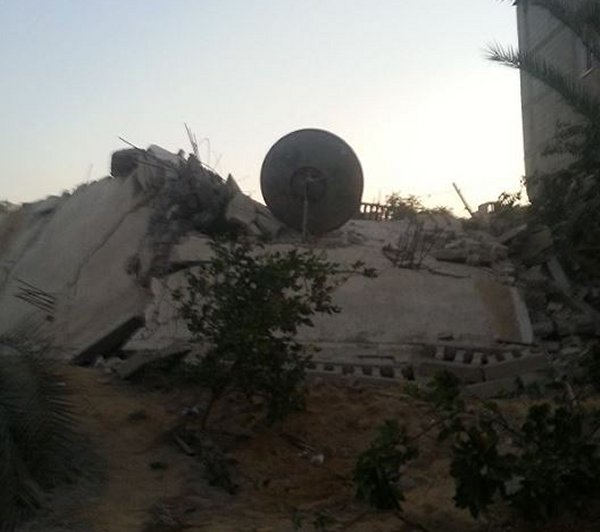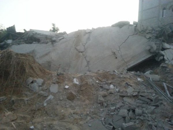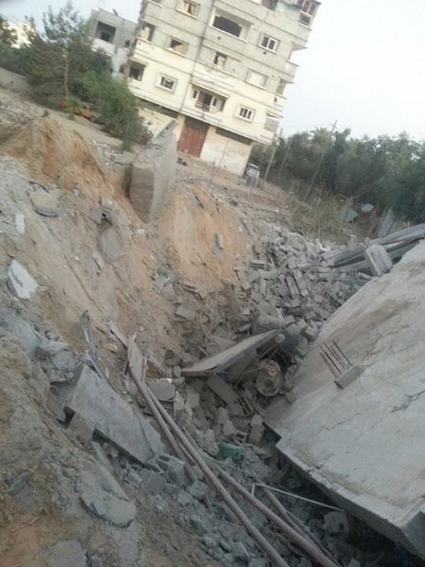 جورة اللوت- الشرابجة- خان يونس- السبت الموافق 2-8-2014م وفي تمام الساعة التاسعة صباحاً، إستهداف منزل السيد نادر حافظ الشوربجي، بصاروخين من قبل طائرات الإحتلال، مما أدى إلى تدمير المنزل وتسويته بالأرض، إضافة لتدمير منجرته الموجودة في الدور الأرضي، والحمد لله لم يصب أحد في المكان.