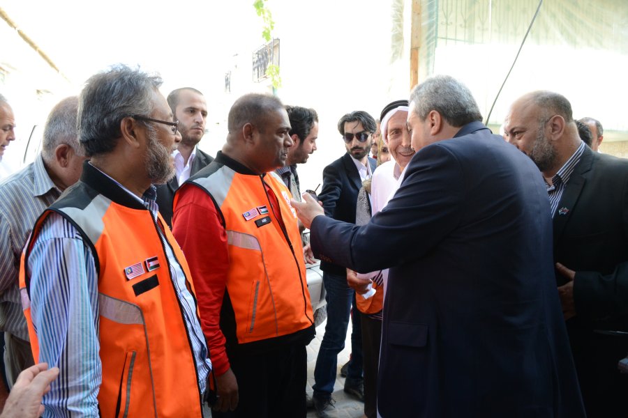 الحاج سليمان حافظ الاغا، أ. أشرف جمعة، أ. بشير كمال الاغا، رئيس الوفد الماليزي، د. أنور الاغا، سفير فلسطين لدى ماليزيا