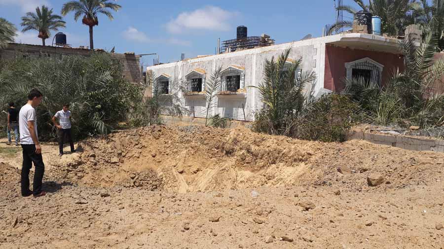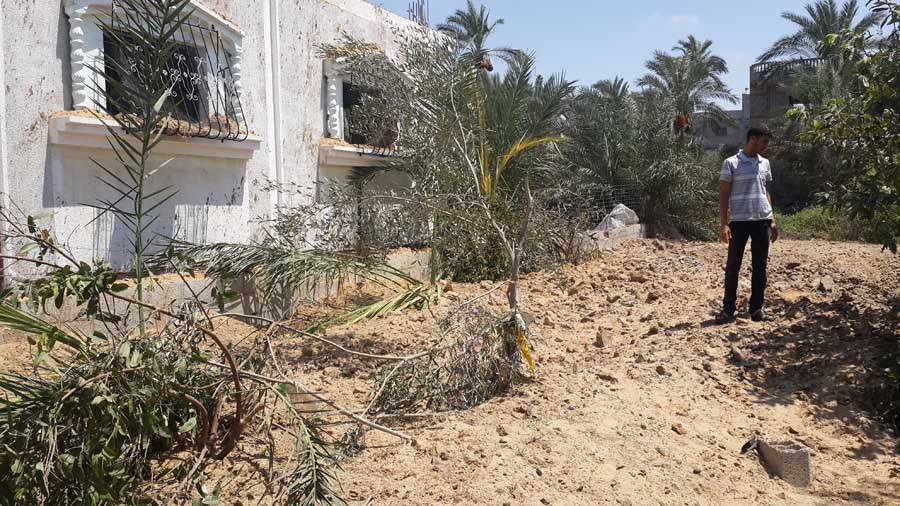 السطر الغربي- خان يونس- شارع البداو- الخميس الموافق 21-8-2014م وفي تمام الساعة العاشرة صباحاً، إستهداف أرض زراعية يملكها السيد محمد إبراهيم بدوي الأغا، من قبل طائرات الإحتلال، بصاروخين من طائرة إستطلاع، و صاروخ من طائرة F16، مما أدى إلى حدوث أضرار بالغة، إضافة إلى إلحاق أضرار في منزل السيد بسام نايف بدوي الأغا، وبحمد الله لم يصب أحد في المكان.