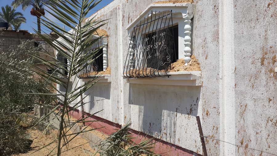اصابة زجاج شبابيك منزل السيد بسام نايف الأغا