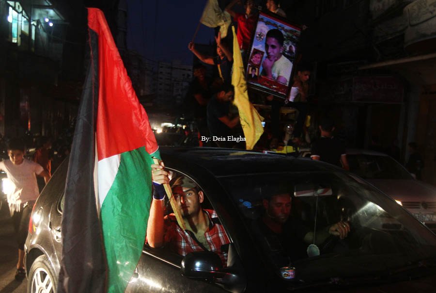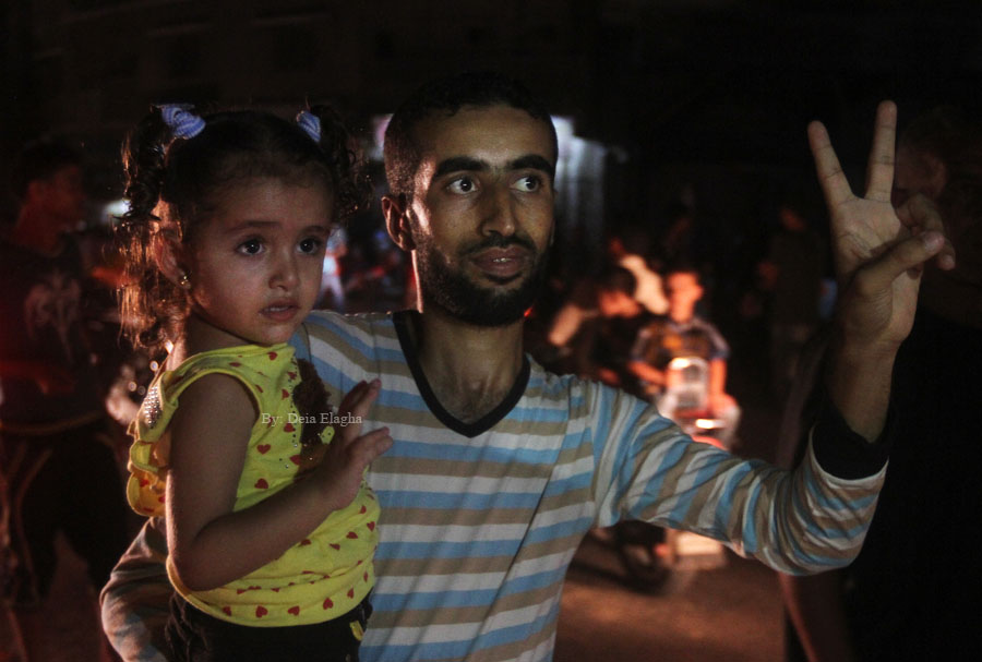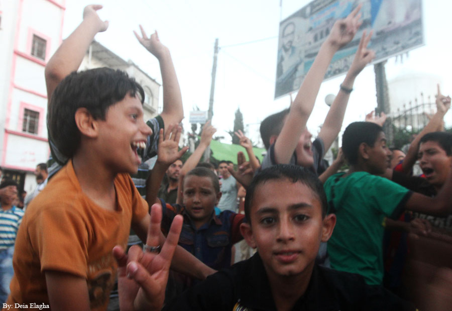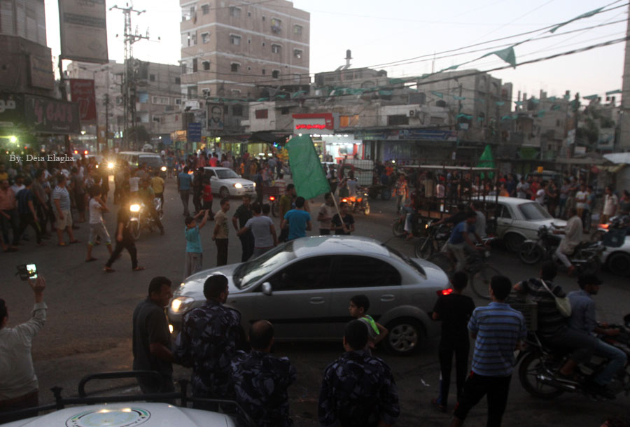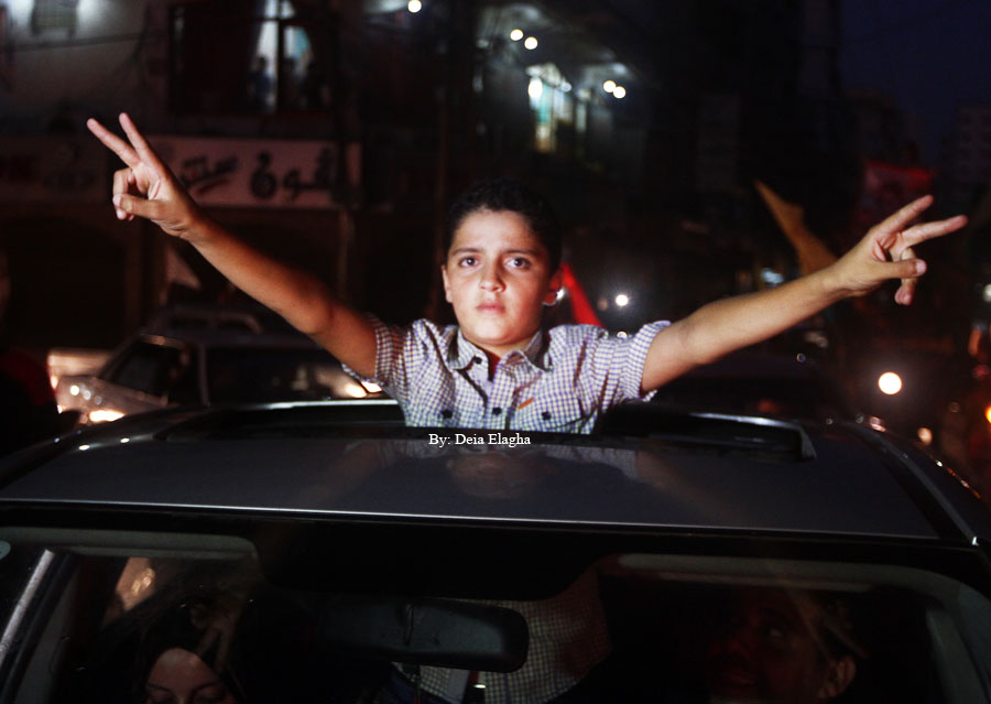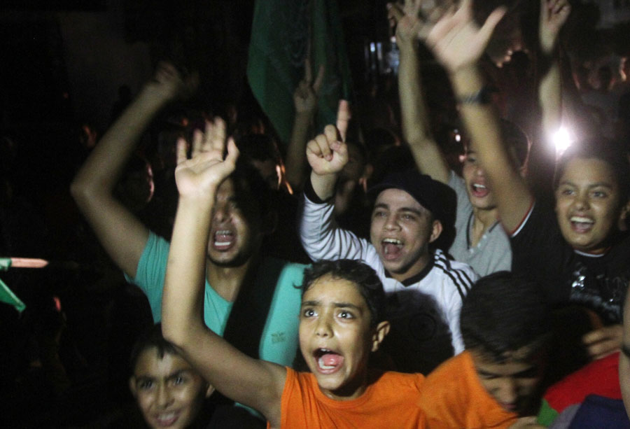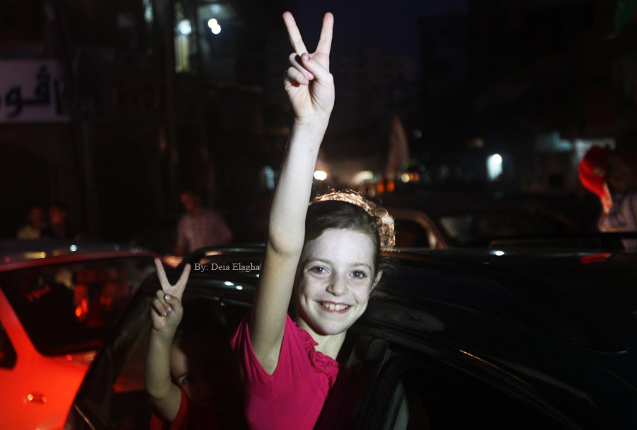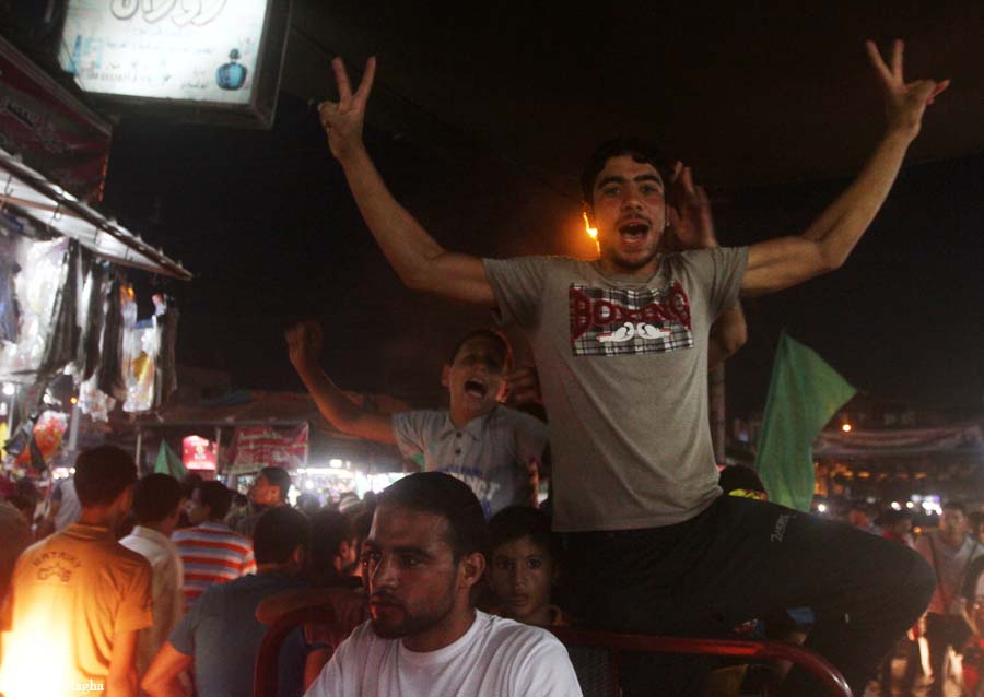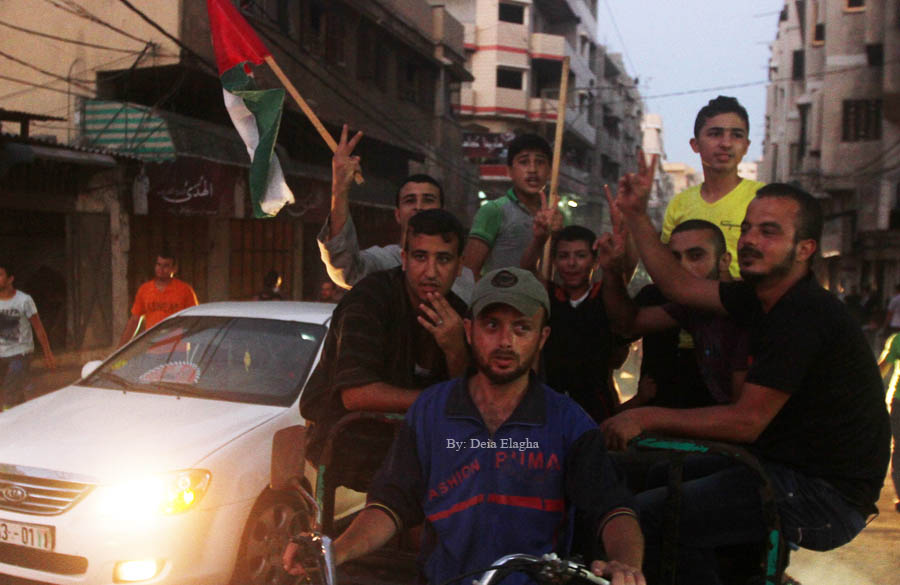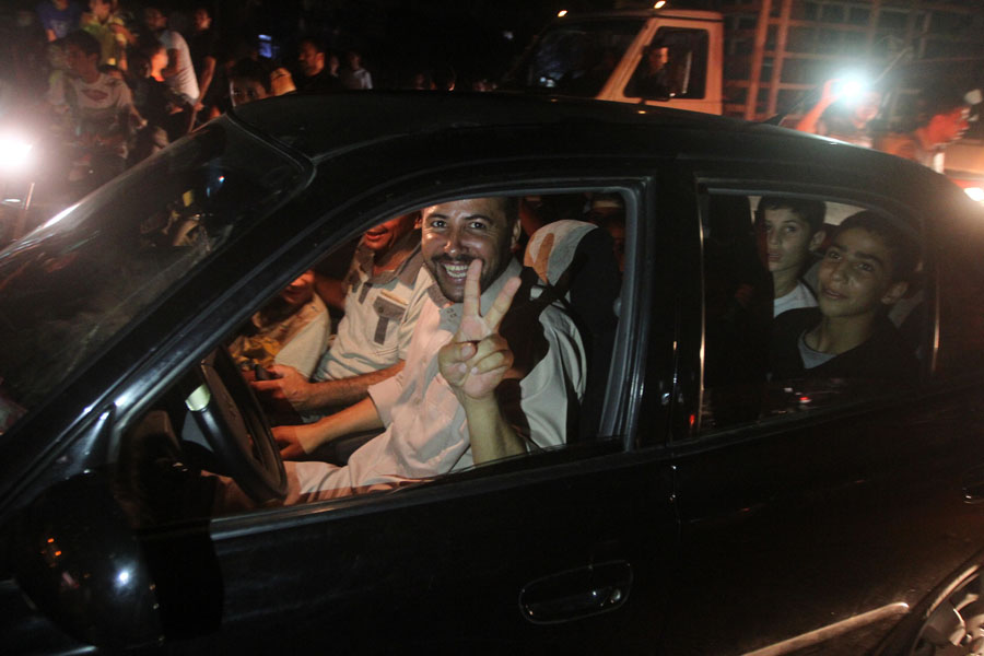 فور دخول اتفاق وقف إطلاق النار في غزة حيز التنفيذ خرج مواطنون إلى الشوارع وبدأت المساجد بالتهليل والتكبير ابتهاجا بوقف العدوان بعد 51 يوما من العدوان الإسرائيلي على القطاع.