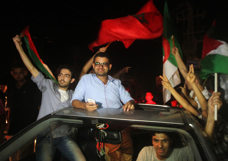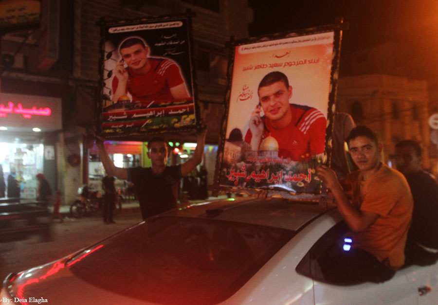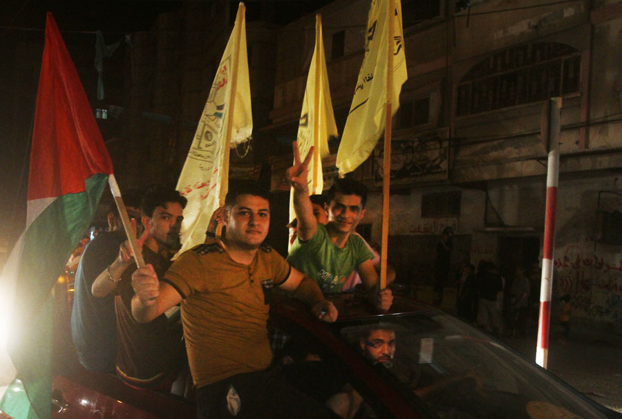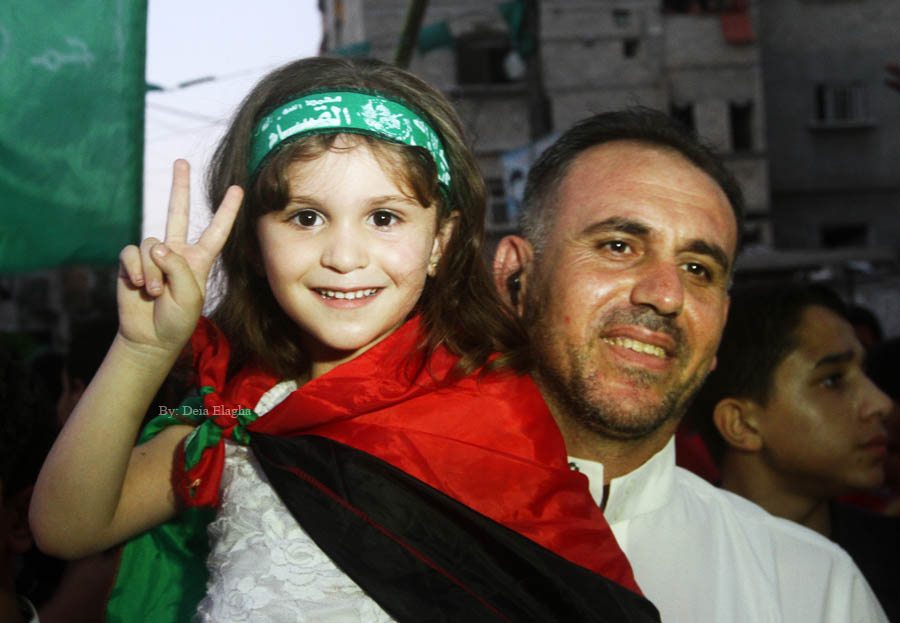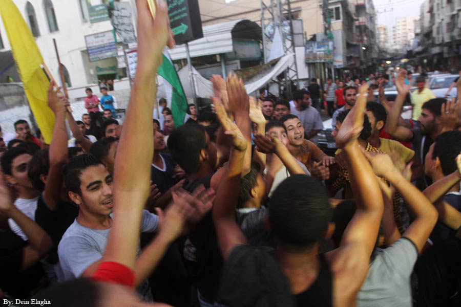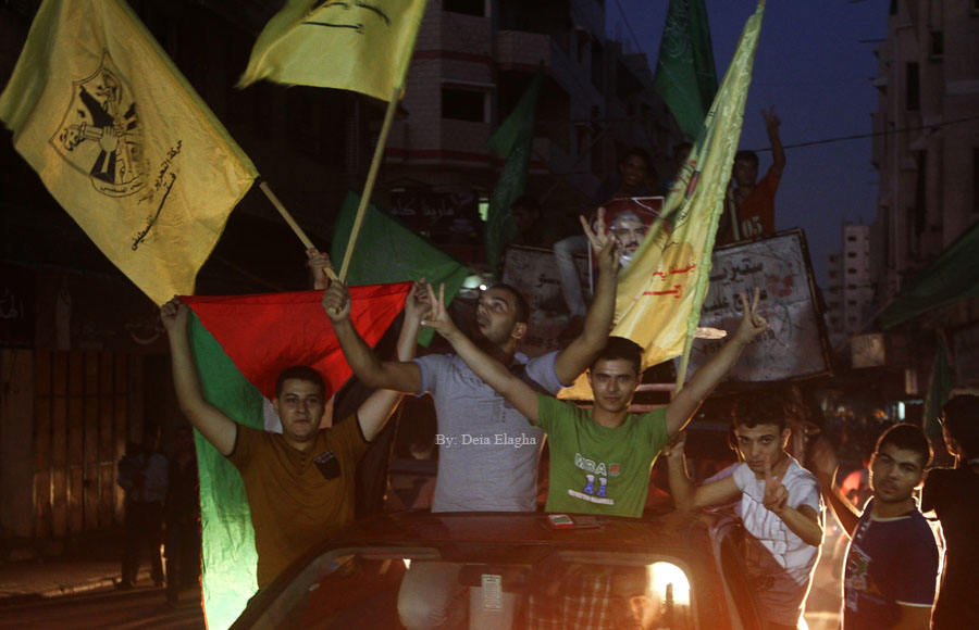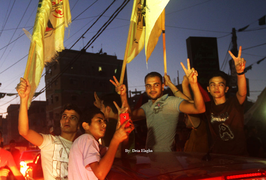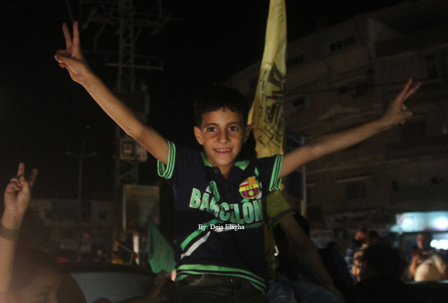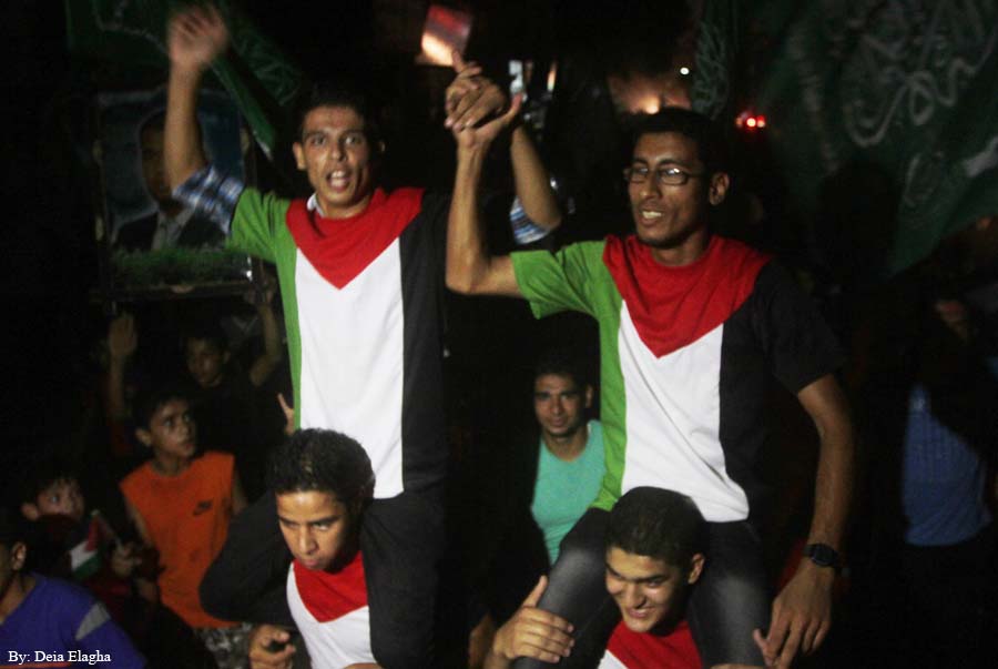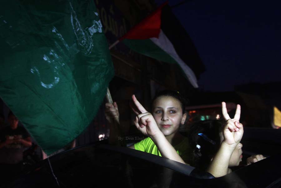 وخرجت الجماهير الفلسطينية للخروج الى الشوارع "للاحتفال بالنصر وبتحقيق مطالب الشعب الفلسطيني".