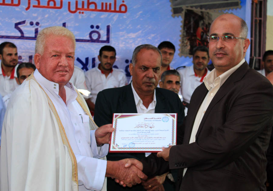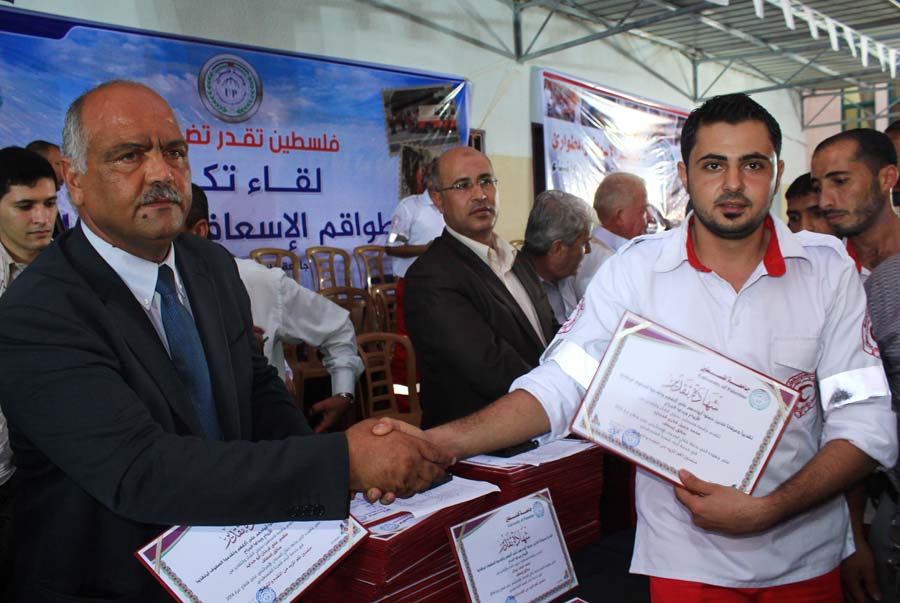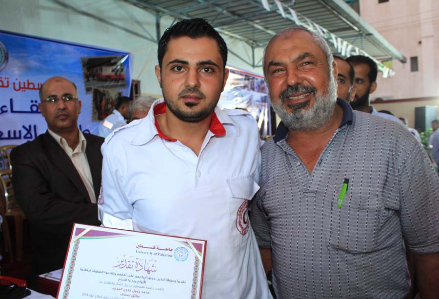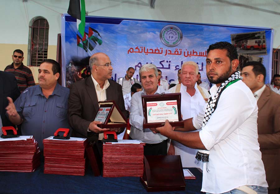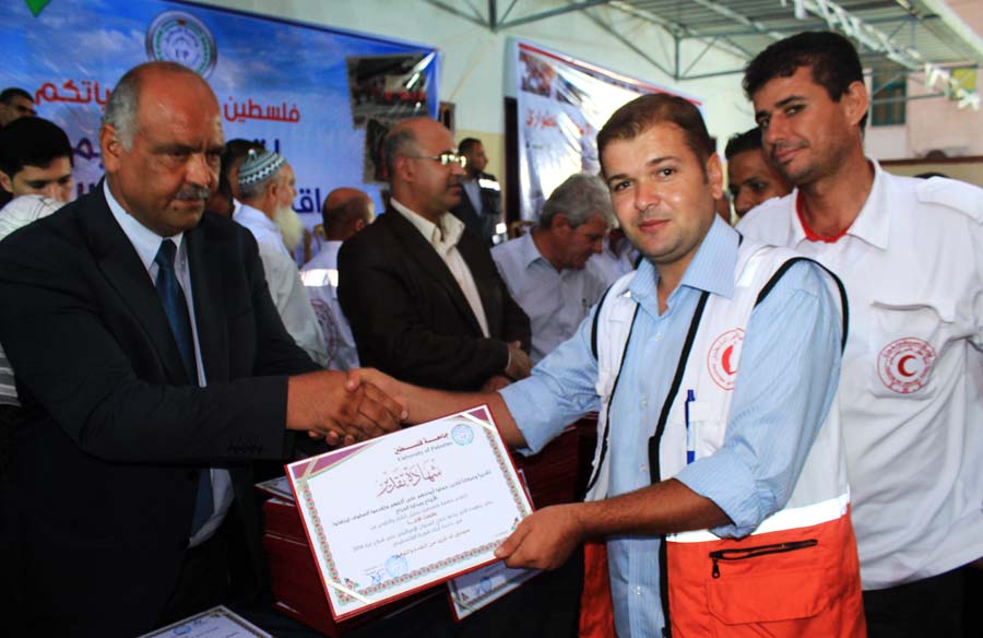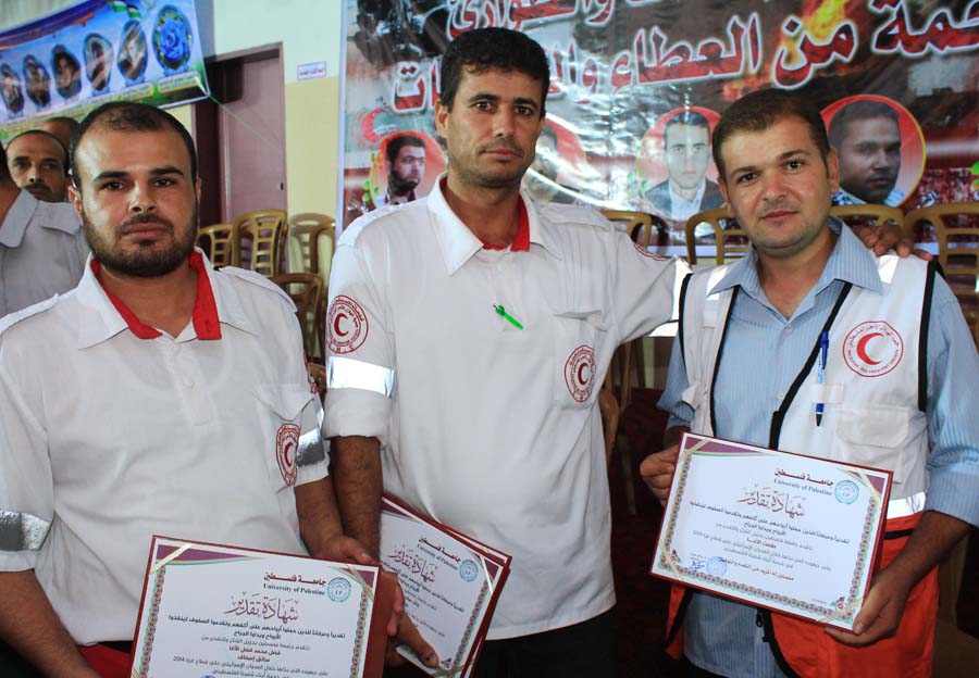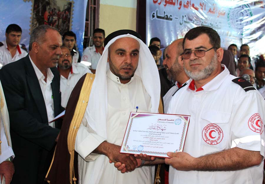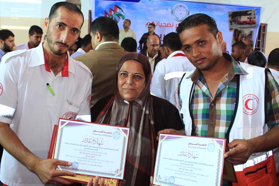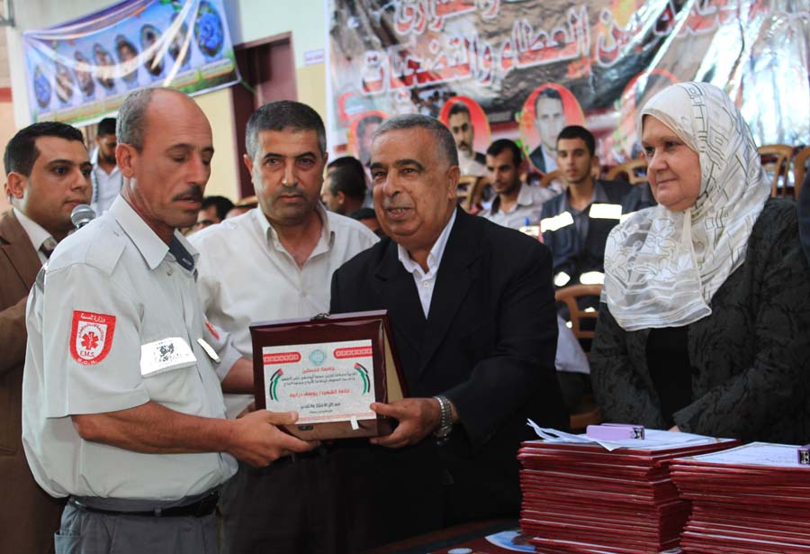 كرمت جامعة فلسطين طواقم الاسعاف والطوارئ في مدينة خانيونس ورفح تقديراً لجهودهم التي بذلوها خلال العدوان الاسرائيلي الأخير على قطاع غزة.