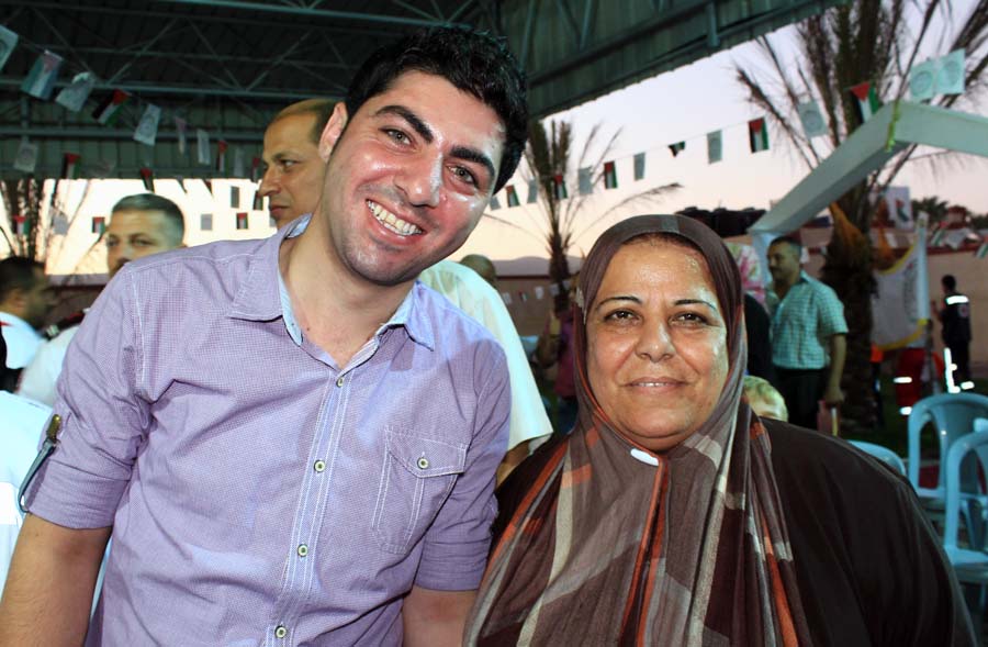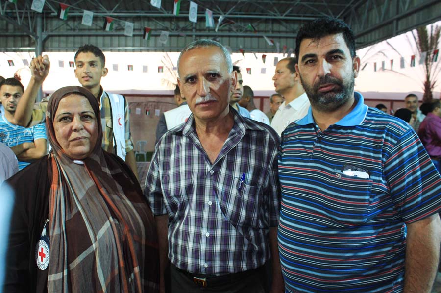 المحافظ د. أحمد الشيبي، أم الأسير ضياء الأغا، أ. طلعت محمد الأغا