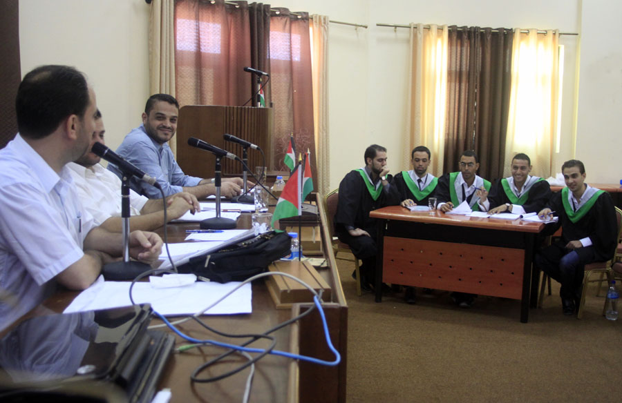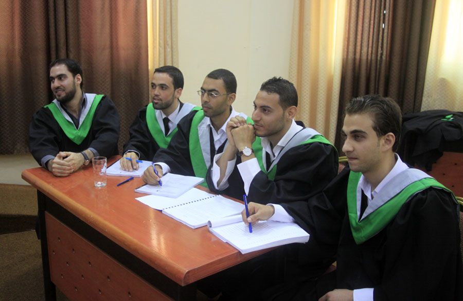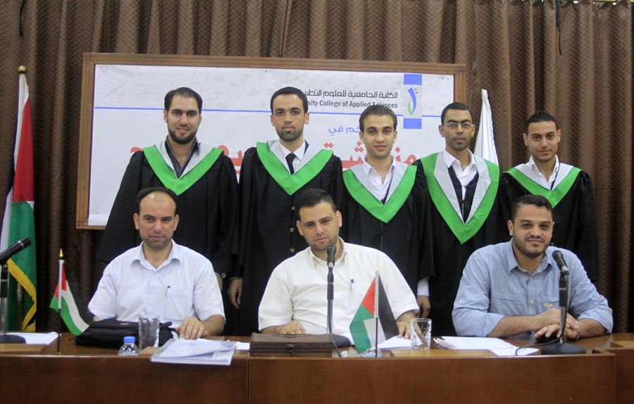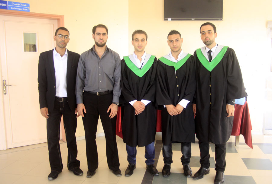 الطلاب: عماد عمر أبو صبره، عبدالرحمن مصطفى منصور، هاني عبدالحميد اللحام، شاكر منتصر الأغا، وسام مصطفى الشوربجي