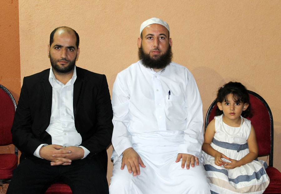 والد العروس، العريس، د. شادي(عم العروسين)، والد العريس، أبو المنذر صادق، الحاج عمر علي الأغا، الشيخ بهاء يحيى الأغا