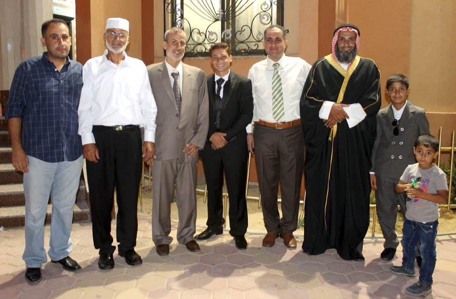 والد العروس وشقيقها عبدالله، العريس، والد العريس