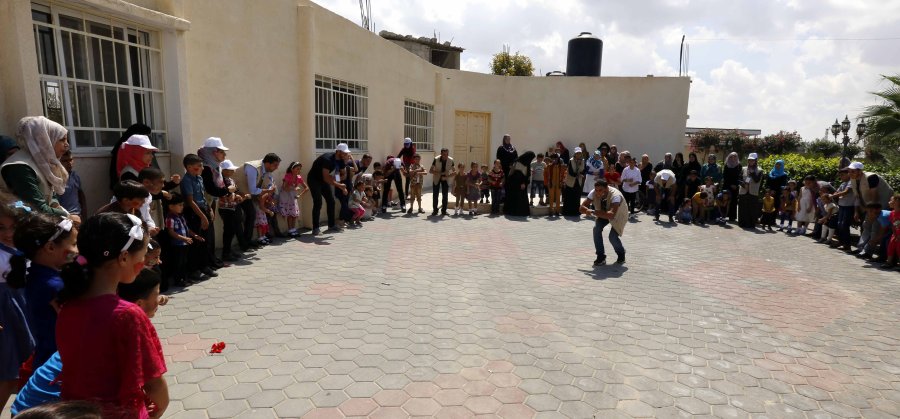 وذلك في المركز الثقافي البلدي بهدف إدخال الفرحة والبسمة علي قلوب الأطفال للترويح والتخفيف عنهم من آثار الحرب القاسية.