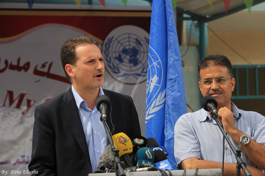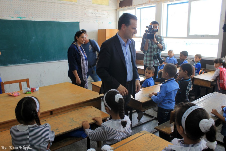 المفوض العام لوكالة غوث وتشغيل اللاجئين الفلسطينيين "أونروا"، بيير كرينيول في إحدى مدارس عبسان شرق خانيونس