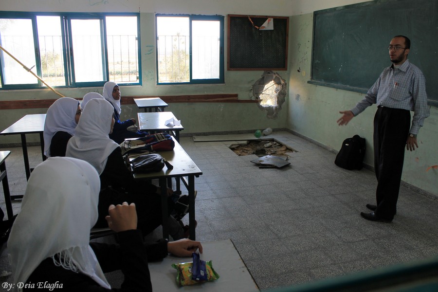 وتضررت 150 مدرسة حكومية واستشهد 2200 فلسطيني وجرح 1100 آخرين ودمرت آلاف الوحدات السكنية نتيجة العدوان الإسرائيلي على القطاع، الذي بدأ في السابع من يوليو وانتهى بعد 51 يومًا باتفاق إطلاق نار برعاية مصرية.