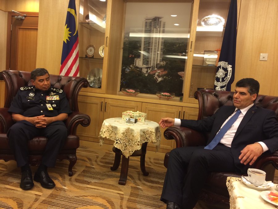 و بحث مدير عام الشرطة مع وزير الداخلية الماليزي آفاق التعاون في مجال العلاقات الشرطية بين البلدين و السبل الكفيلة بتعزيزها و تطويرها لما يخدم مصالح البلدين،. و قدم للوزير هدية تذكارية عبارة عن مجسم للقدس من الصدف، كما بحث اللواء عطا الله في لقاء آخر مع المفتش العام للشرطة في ماليزيا تان سري خالد أبو بكر الجوانب العملية للتعاون الثنائي في المجالات الشرطية، سيما تبادل الخبرات و التدريب، و ذلك بمشاركة عدد من الضباط الكبار و المساعدين للمفتش العام للشرطة في ماليزيا.