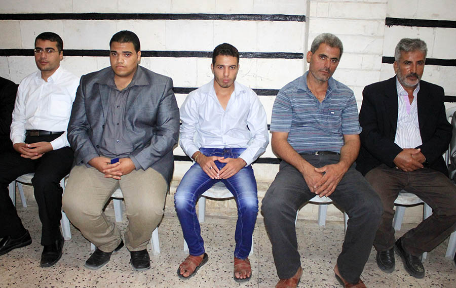 أكرم(شقيق العريس)، أ. مروان(عم العريس)، ياسر إبراهيم الاغا، والد العريس، معالي كامل الأغا