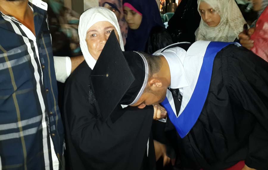 الخريج يُقبل يد والدته