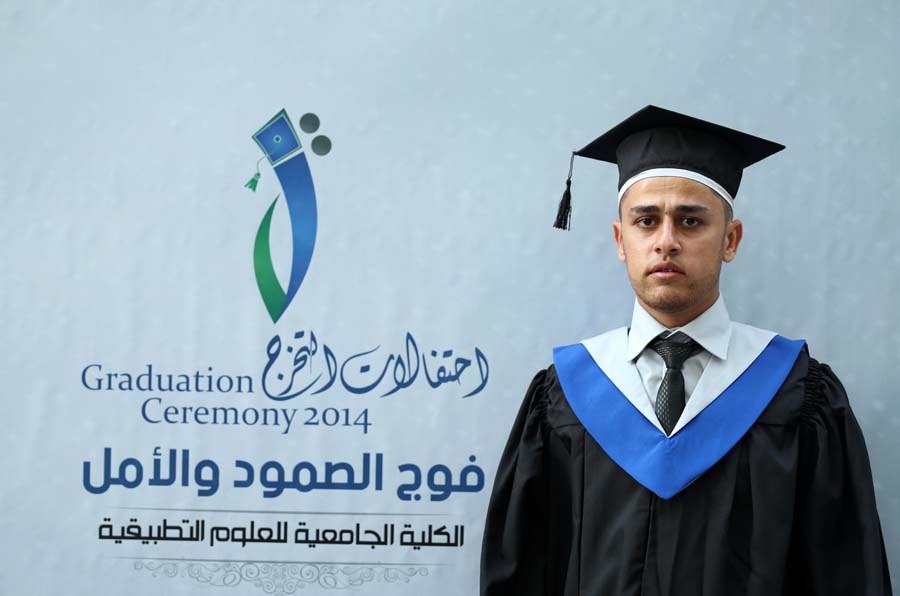 الكلية الجامعية للعلوم التطبيقية- غزة- تل الهوى- تخرج الطالب حسام نايف نايف الأغا دبلوم سكرتارية وعلوم قانونية، فوج الصمود والأمل .