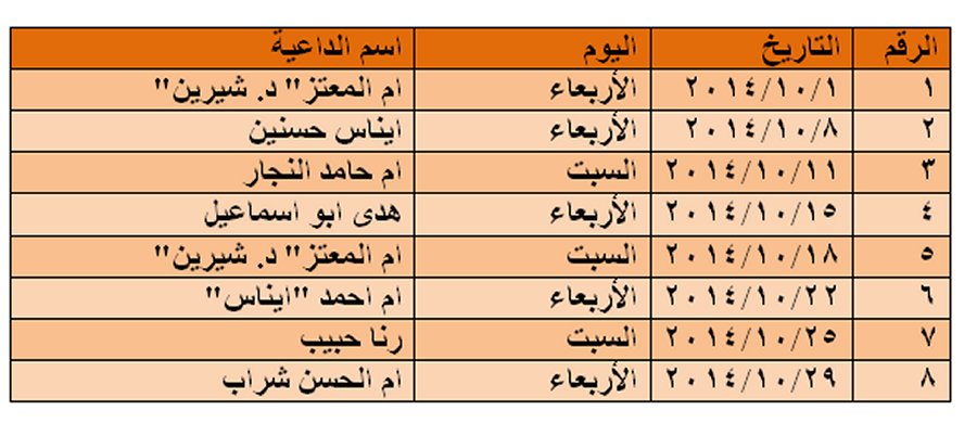 جدول أنشطة دار الكامل لشهر تشرين أول