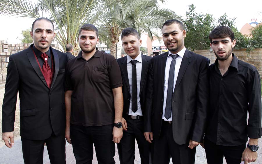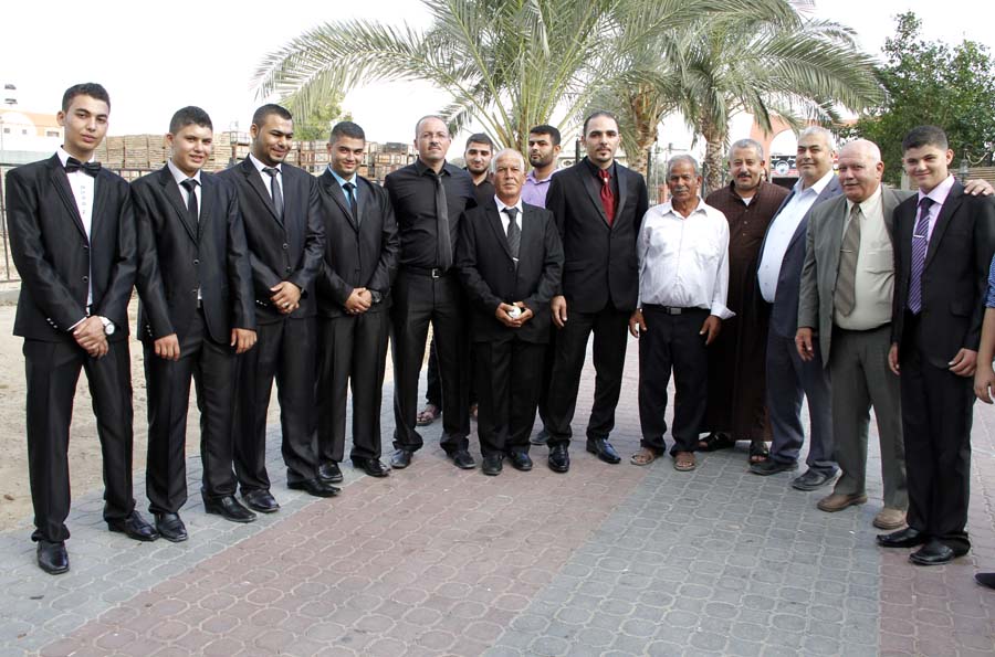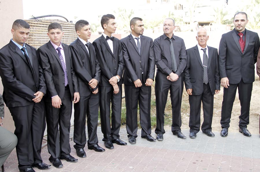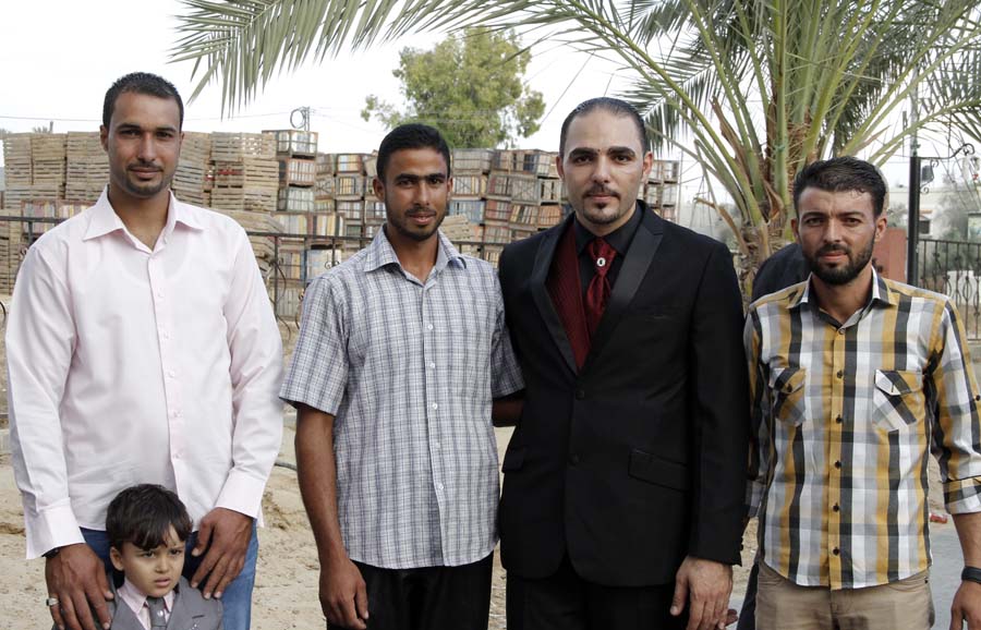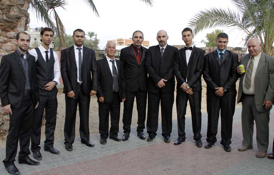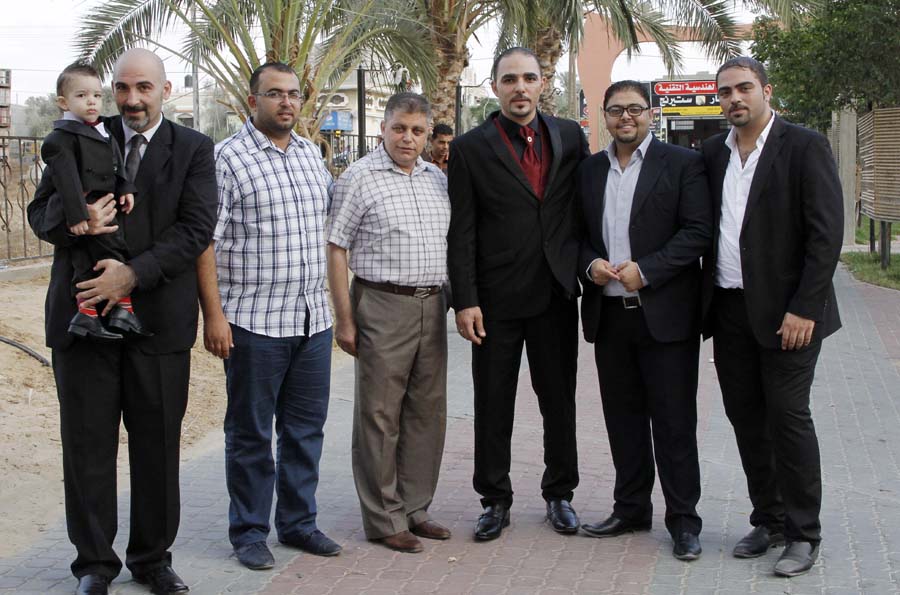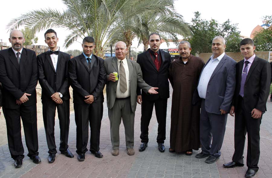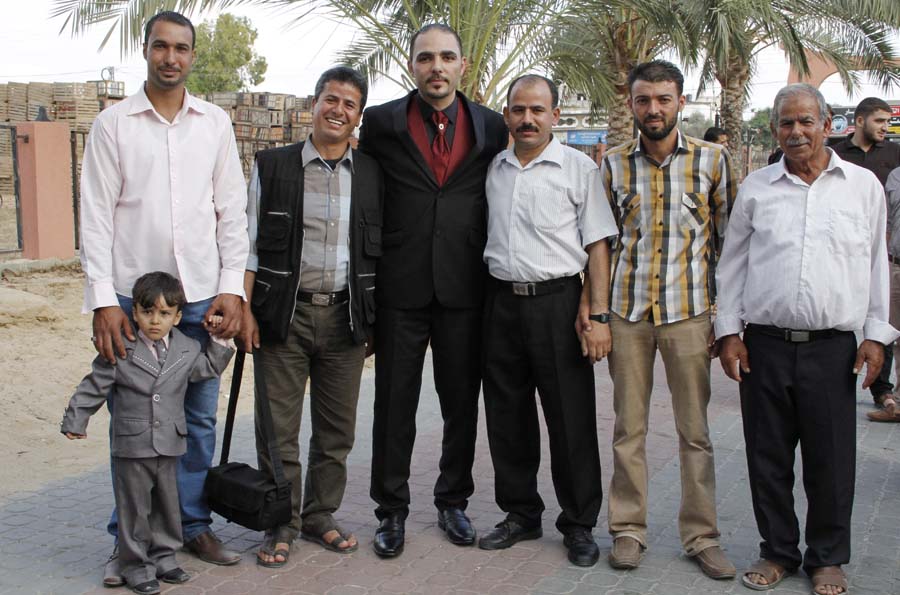 أشرف محمد الأغا، الحاج عيد(عم العريس)، الحاج مروان رمضان الأغا، أ. رجائي العبادلة، العريس، والد العروس