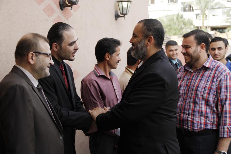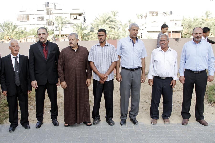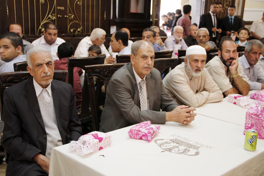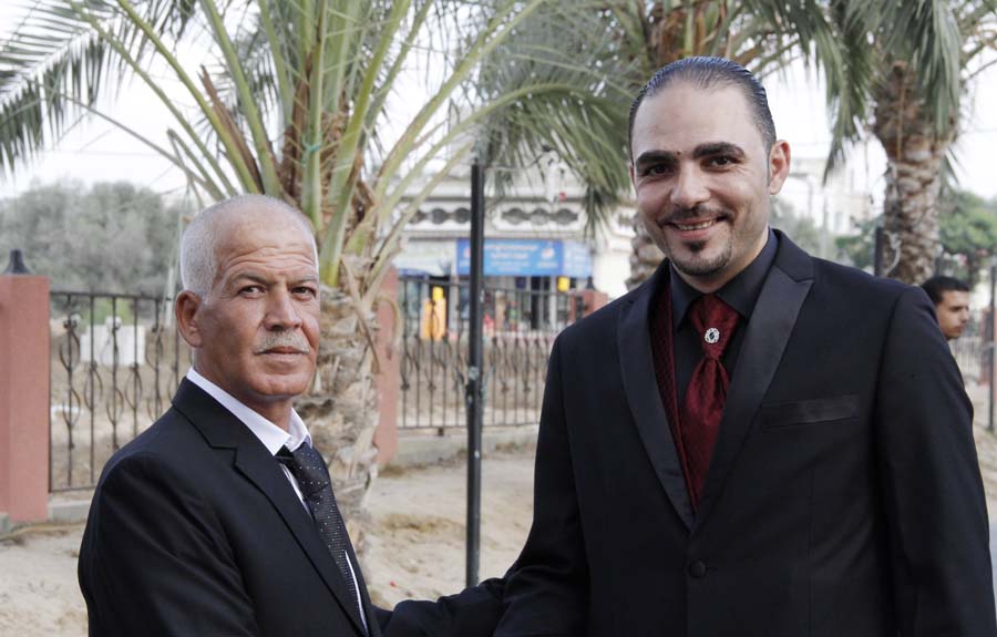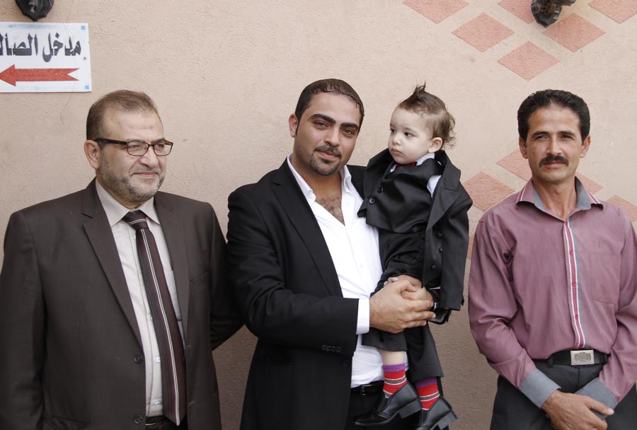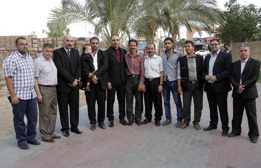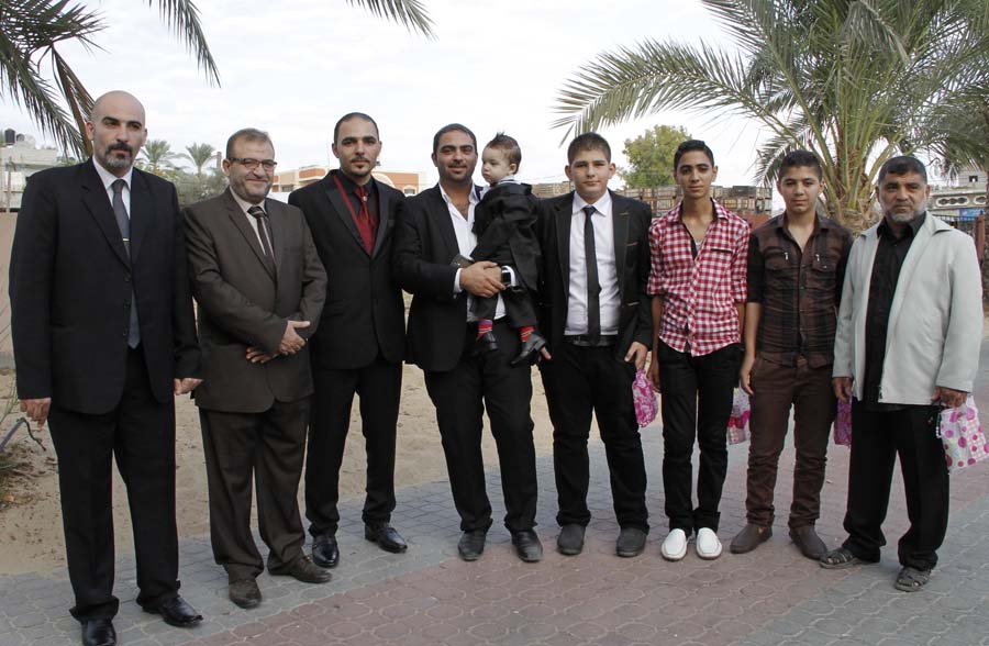 أشرف محمد الأغا، الحاج عيد(عم العريس)، الحاج مروان رمضان الأغا، أ. رجائي العبادلة، العريس، والد العروس