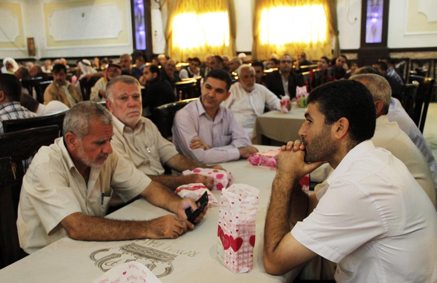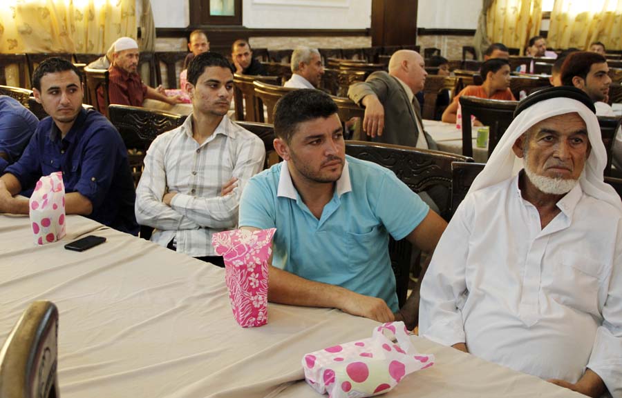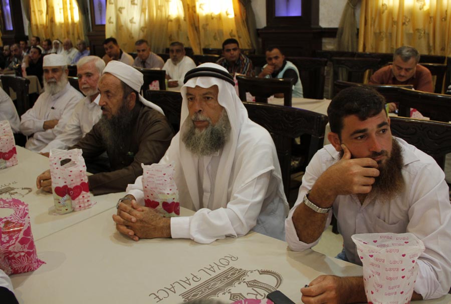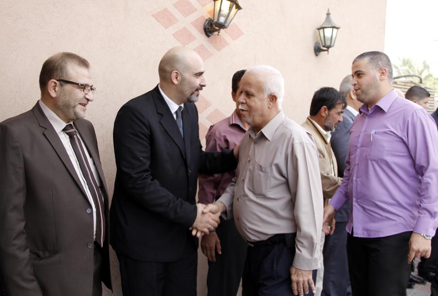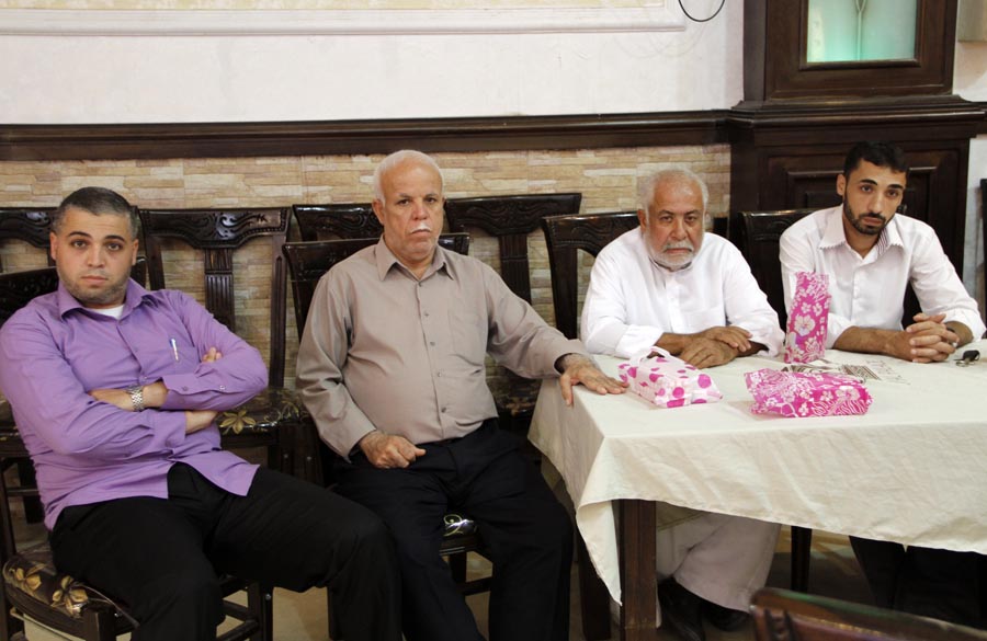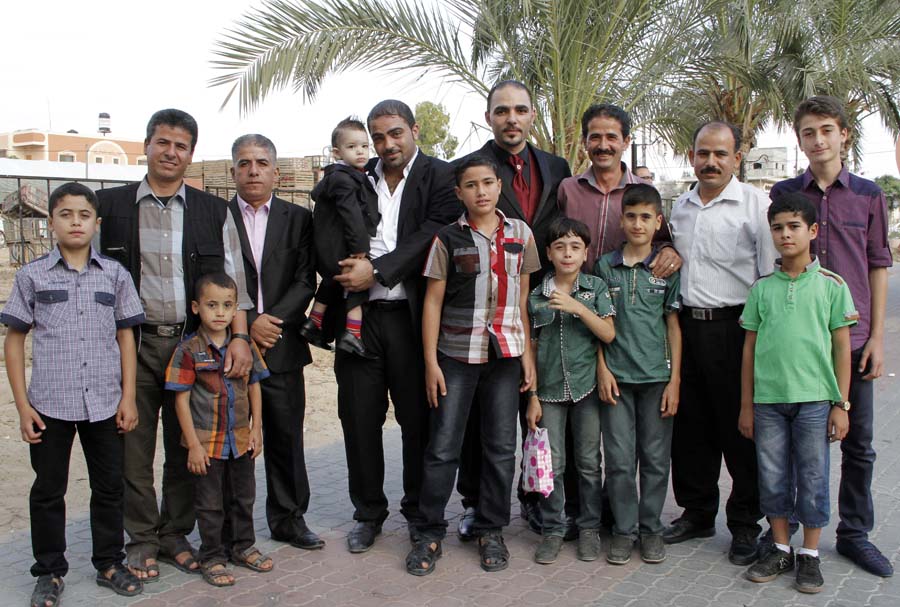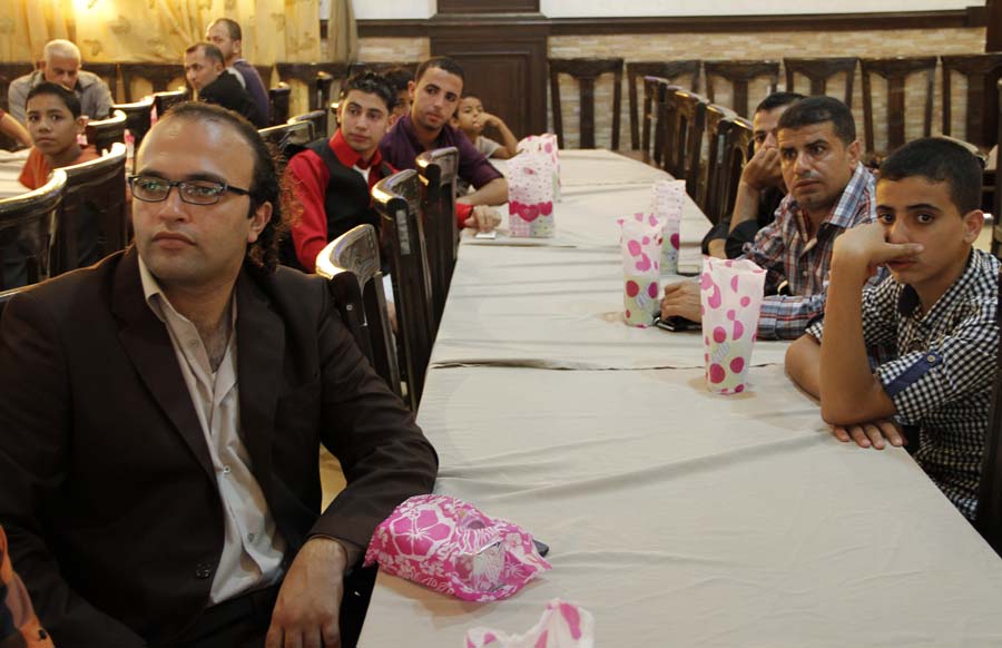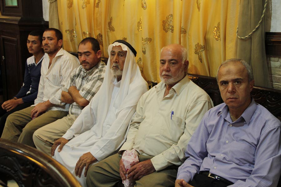 أشرف محمد الأغا، الحاج عيد(عم العريس)، الحاج مروان رمضان الأغا، أ. رجائي العبادلة، العريس، والد العروس