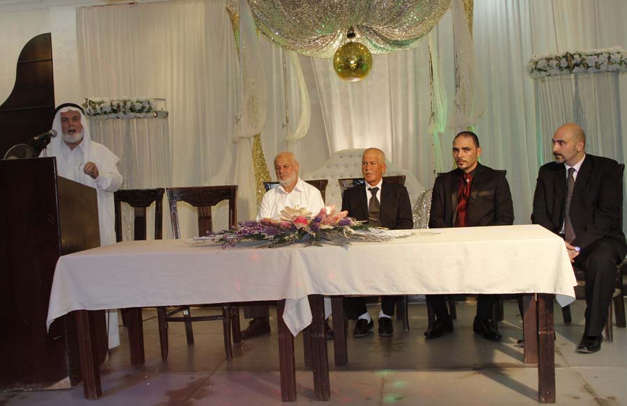 أ. شمس(شقيق العريس)، العريس، والد العروس، السيد سعيد العبادلة، الشيخ مازن الأغا