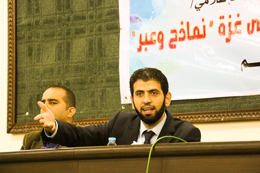 بينما تحدث أ. خالد صافي على أهمية النشر السليم في مواقع التواصل الإجتماعي، وعدم نشر معلومات قد تضر بالمصلحة الفلسطينية، وان يكون كل مدون وناشط مسؤول عن قلمه وتصريحاته.