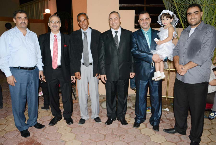 أ. عبدالرحمن الفرا، م. علاء البطة(خال العروسين)، والد العروس، ا. يحيى(عم العروس)، والد العريس، م. حاتم عويضة
