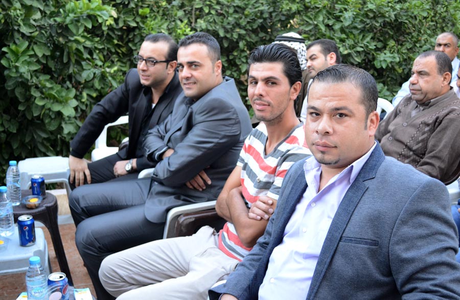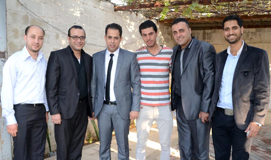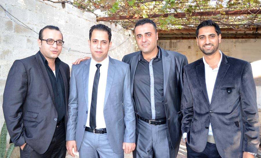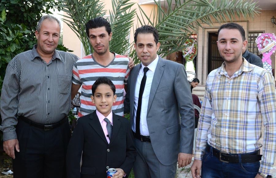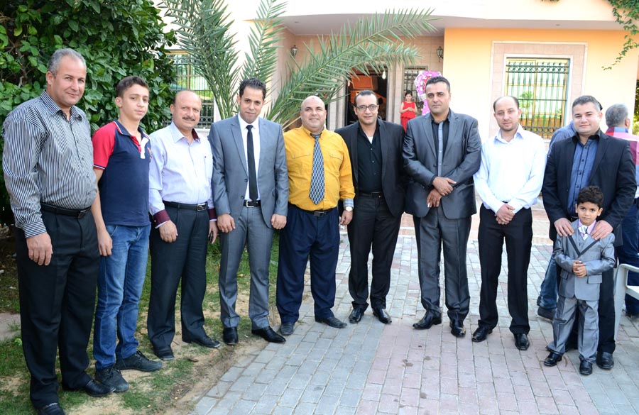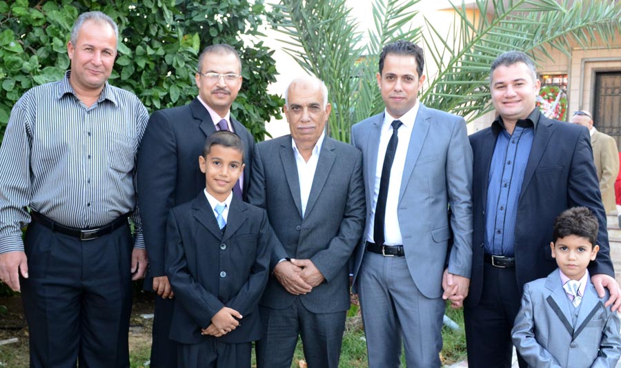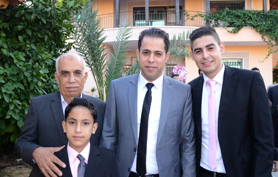 أ. حمدان ونجله كريم، العريس ووالده، أ. حسين ومحمود (شقيقا العريس)، عمار فؤاد الأغا