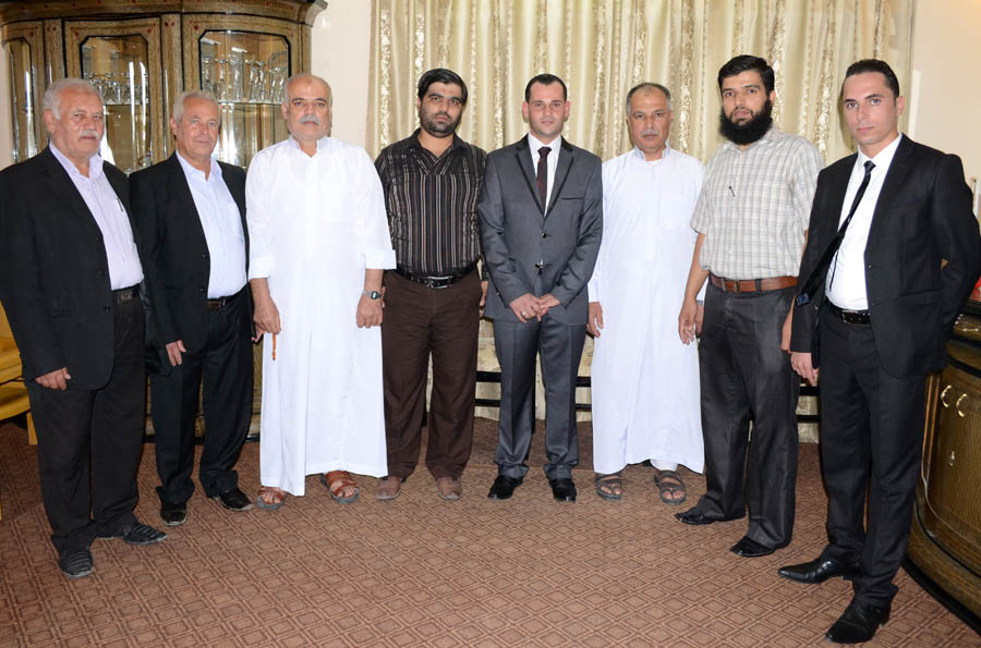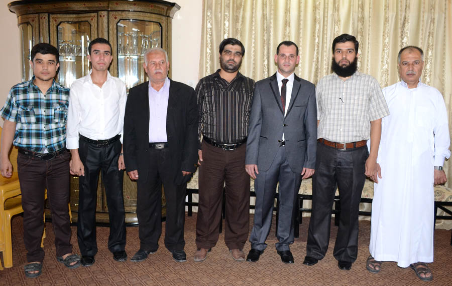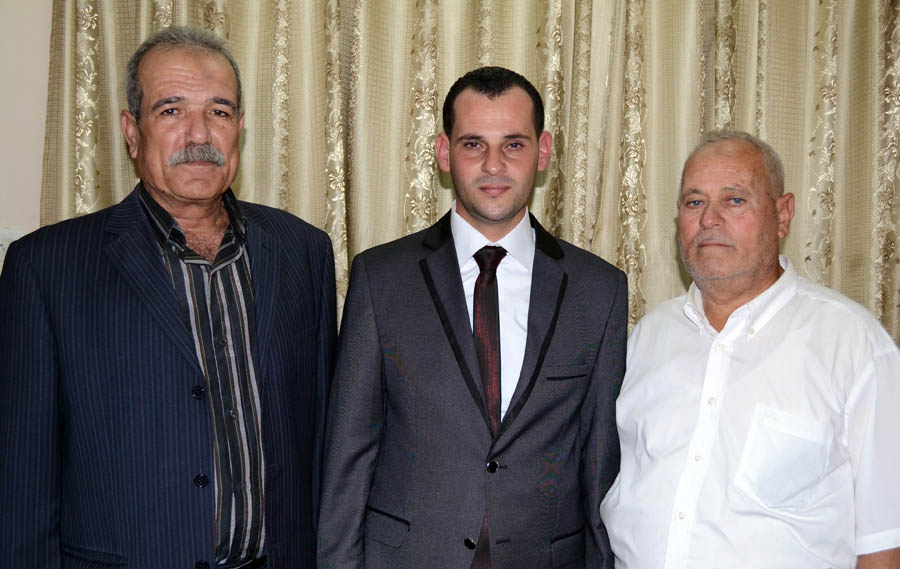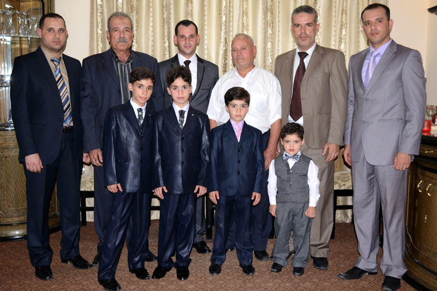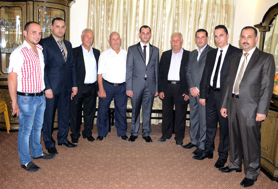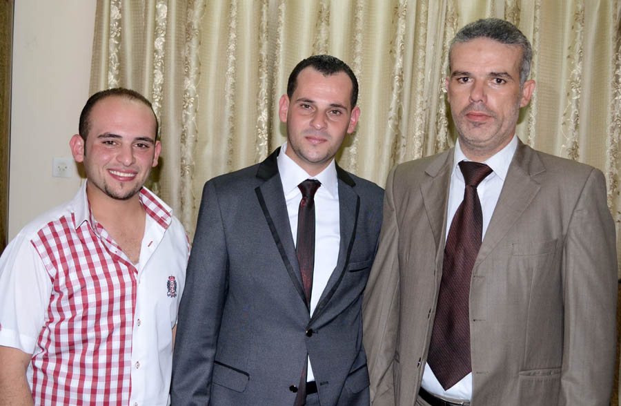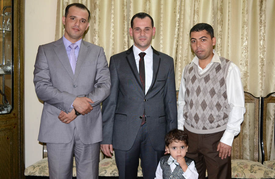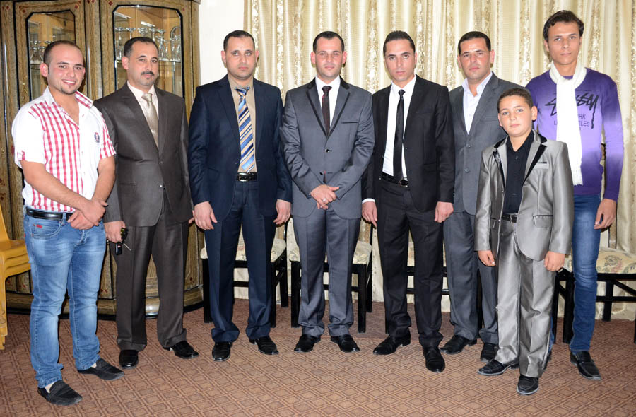 أ. سعد وأ. إياد(شقيقا العروس)، والد العريس، العريس، والد العروس، محامي خليل(شقيق العريس)