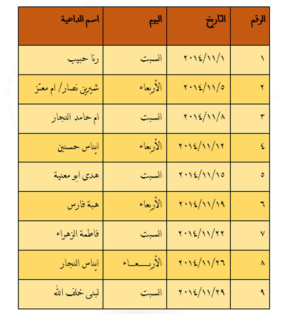الرئيسة/دار الكامل/دار الكامل- أنشطة شهر نوفمبر 2014 دار الكامل دار الكامل- أنشطة شهر نوفمبر 2014 تاريخ النشر : الجمعة | 31-10-2014 | 22:09 15200 بسم الله الرحمن الرحيمدار الكامل- أنشطة شهر نوفمبر 2014 اضغط هنا للتواصل أو التعرف على أ. محمد كامل عبدالرحمن سليم الأغا يمكنك تلقي أحدث الأخبار أول بأول بانضمامك لإحدى مجموعات الواتساب الخاصة بالعائلة من خلال الضغط هنـا اظهر المزيد