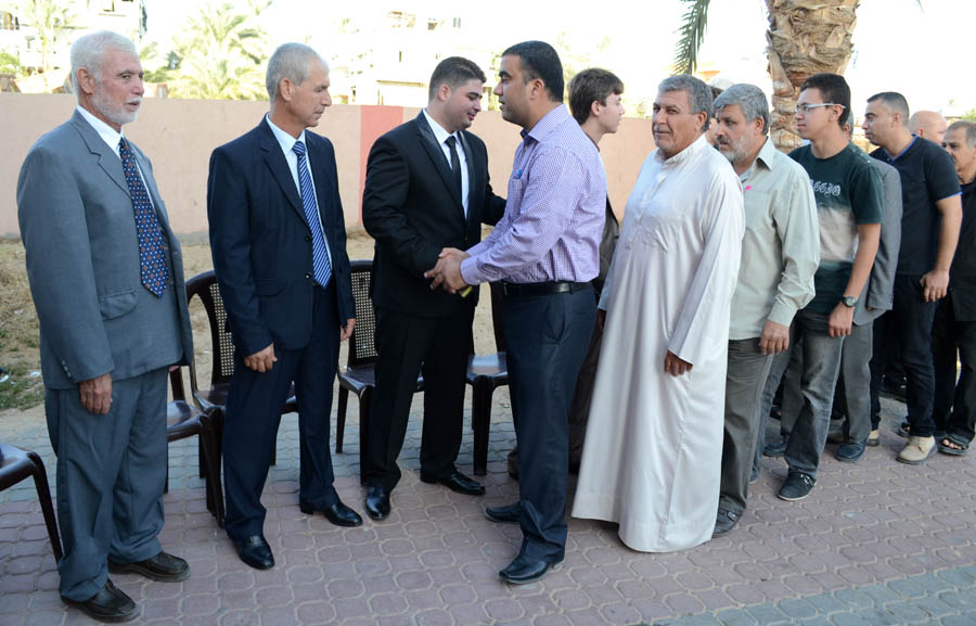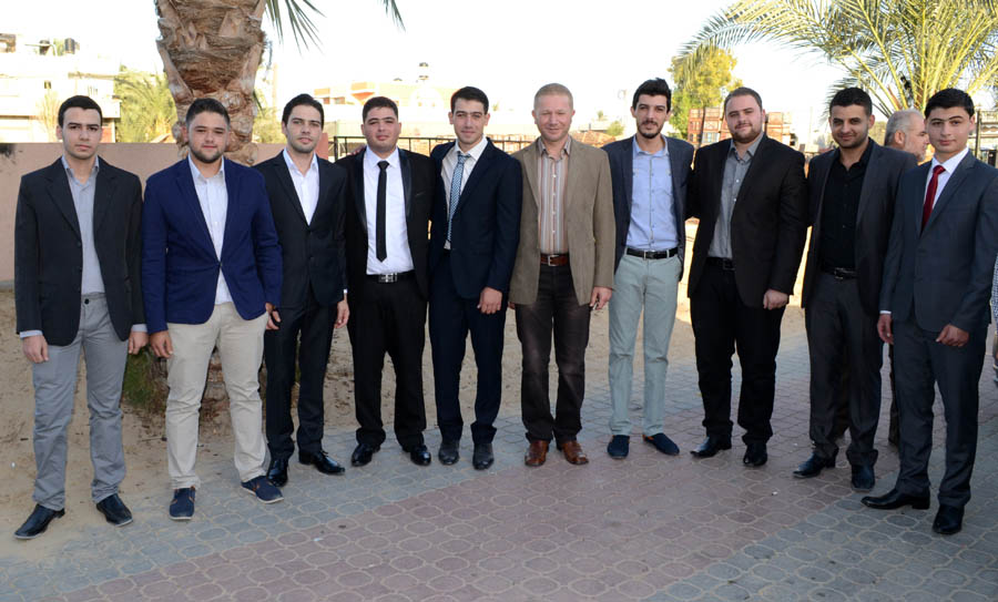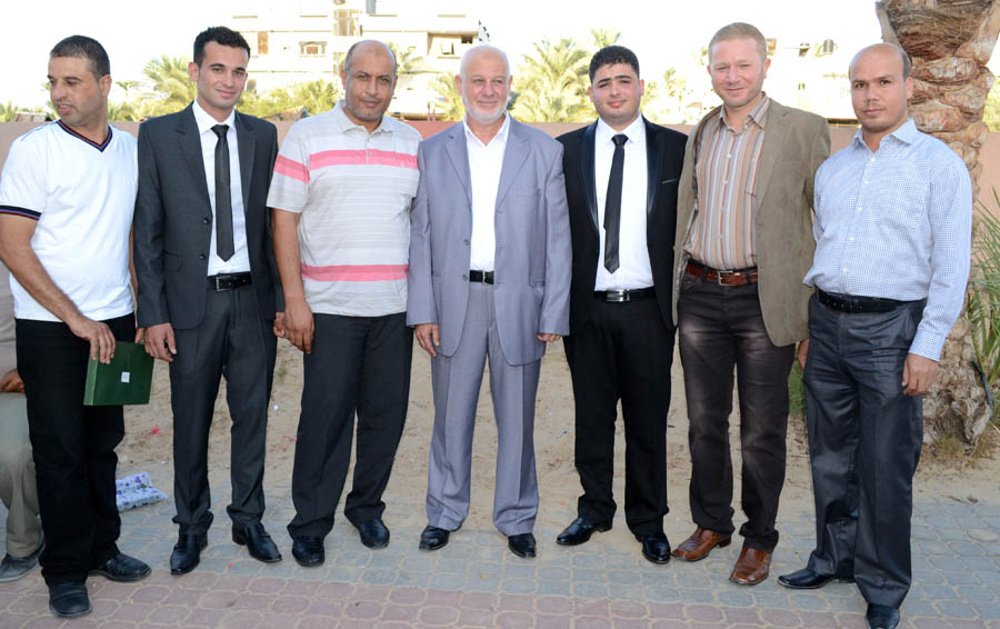أ. سمير حرزالله وشقيقه م. محمد، علي حسن عودة ونجله الدكتور، ..، أ. إياد أحمد الأغا