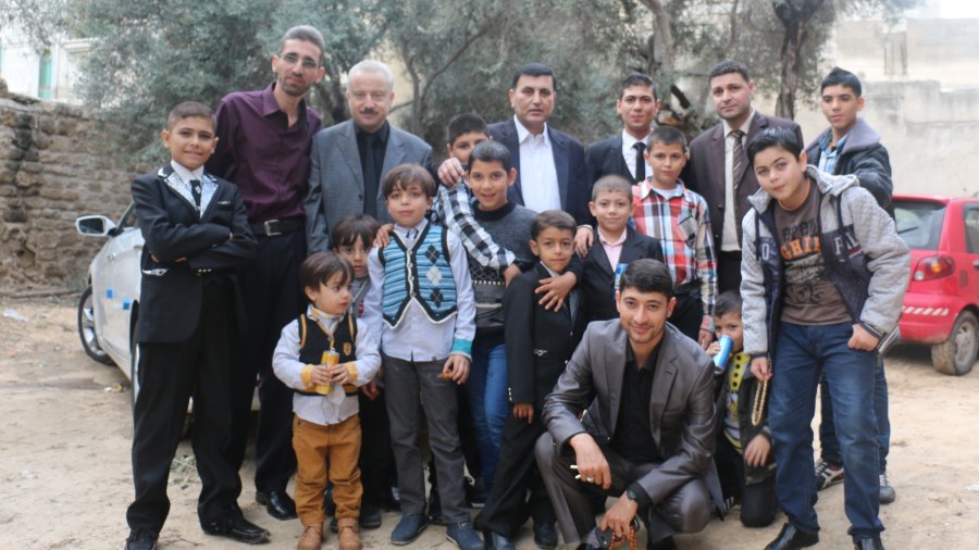 صورة لأقارب العريس من أمام ديوان عائلة الأغا