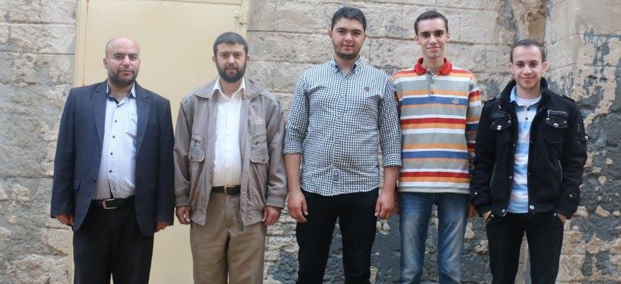 السيد أحمد(عم العروس)، الشيخ مازن، العريس، م. سفيان، أ. بهاء رمضان وشقيقه احسان و عزمي(اخوال العريس)