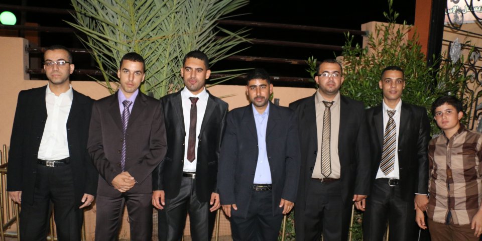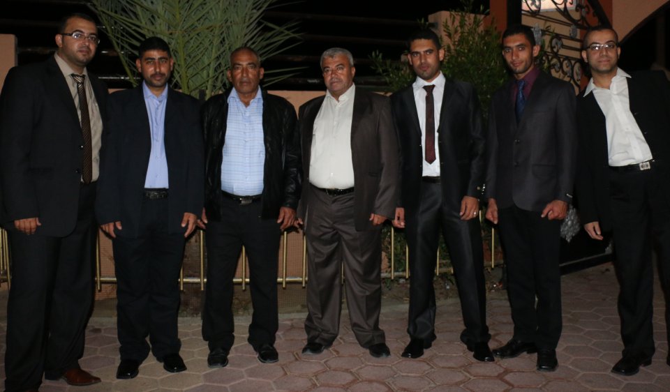 حمزة(شقيق العروس)، نضال الأسطل (إبن خالة العريس)، شقيق العروس، أ. عبدالمنعم الأسطل، العريس، أ. جميل شهوان(إبن خال العريس)، أ. محمد كمال