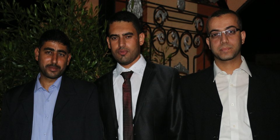أ. محمد كمال (زوج شقيقة العروس)، العريس، أ. عبدالمنعم رشاد الأسطل (زوج شقيقة العروس)
